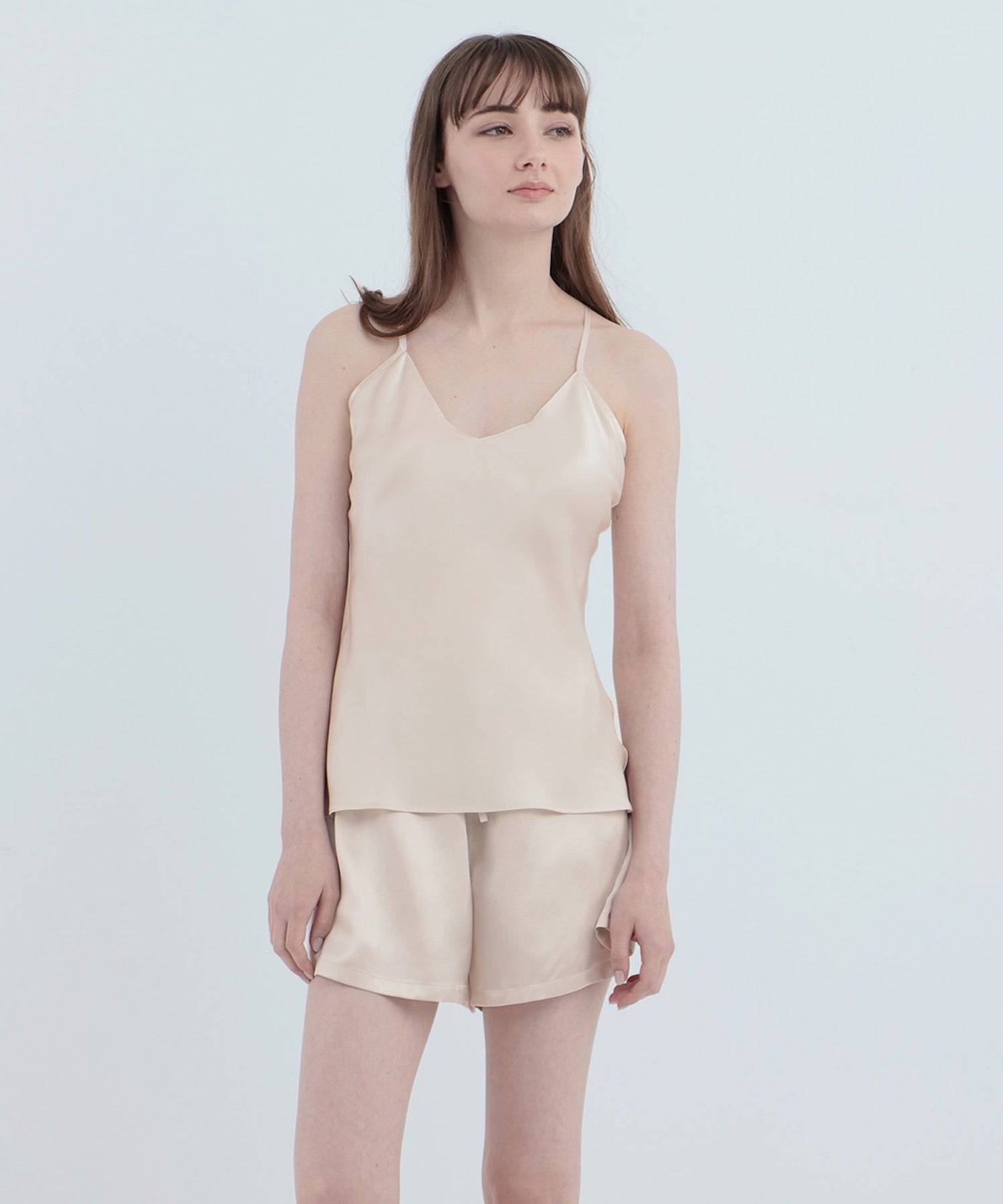 特別なシルクを100%使用し、素肌に吸い付くような抜群の着心地のキャミソール&ショートパンツは、特に20~40代の女性へおすすめ。 お誕生日やさまざまなお祝いイベントに、美意識の高い方、おうち時間を充実させたいへの贈り物としていかがでしょうか。 もちろん、いつも頑張っている自分へのご褒美にも。