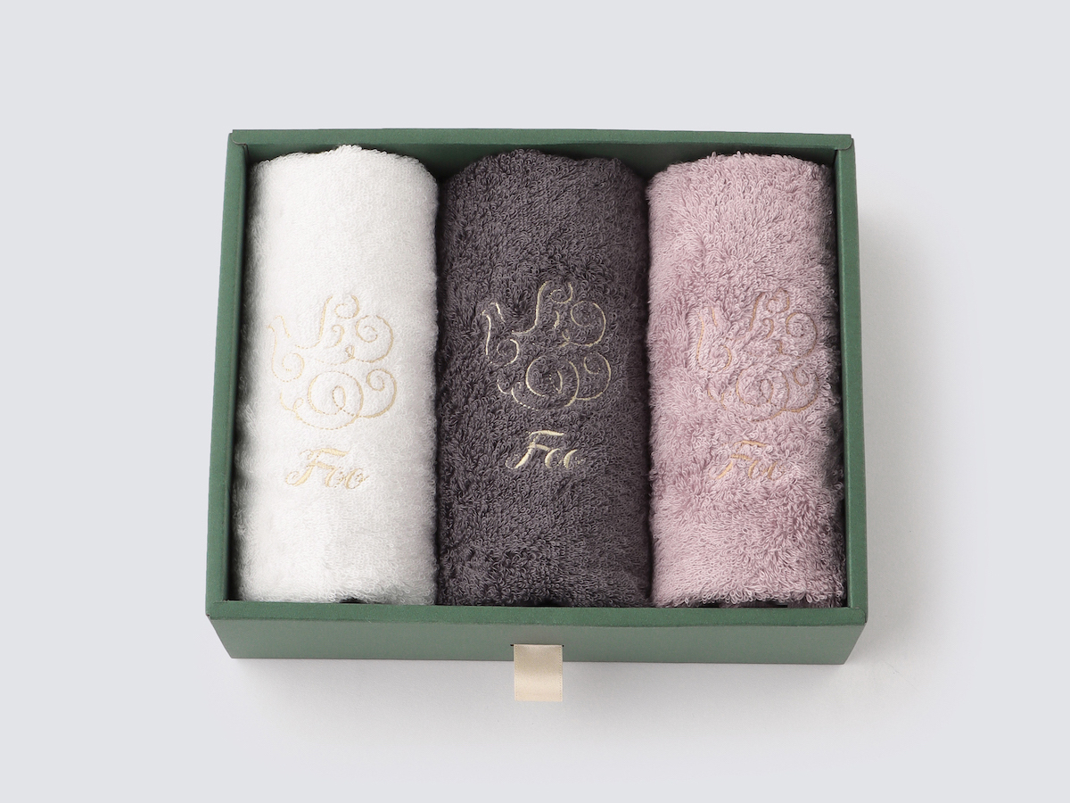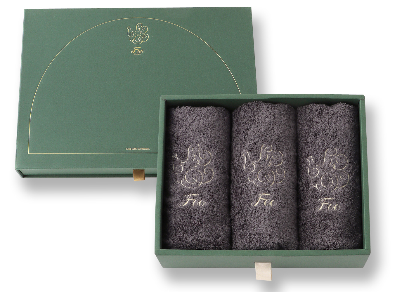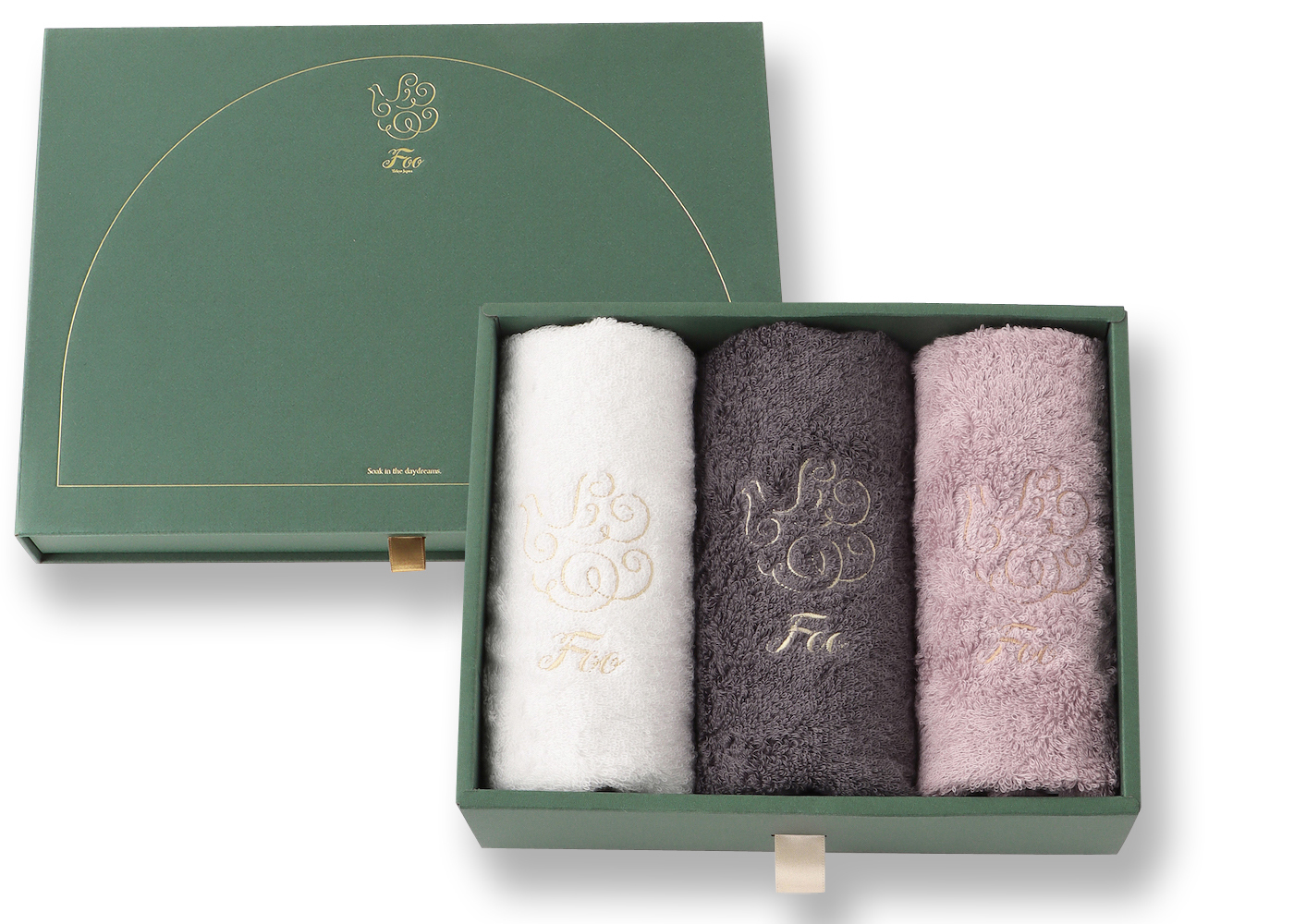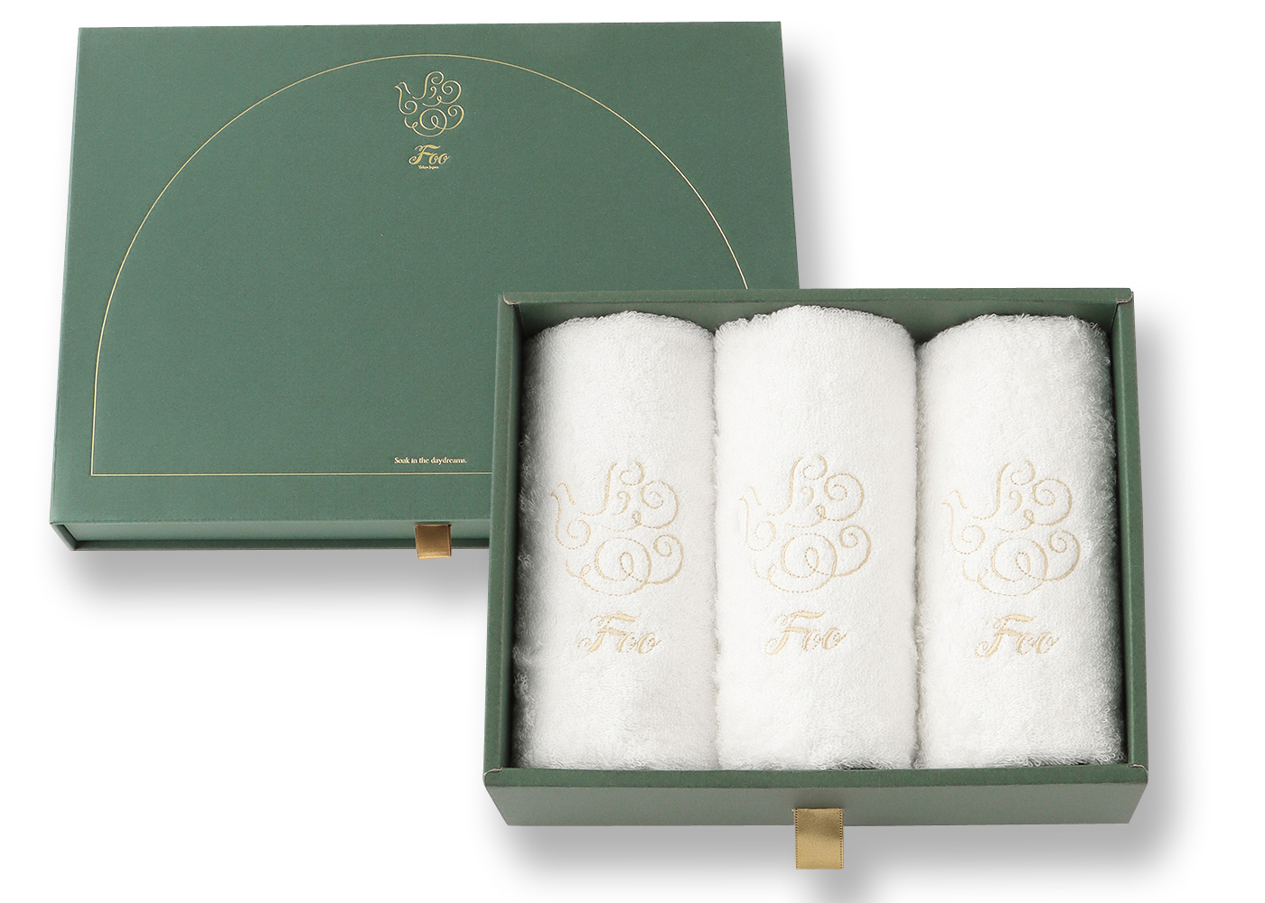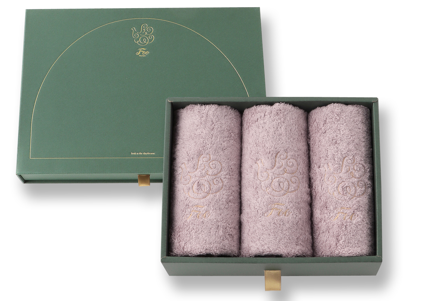 大口注文・法人のお問い合わせはこちらフェイスタオルが3枚入ったギフトセットです。 Foo Tokyoオリジナルギフトボックスに入れてお届けいたします。