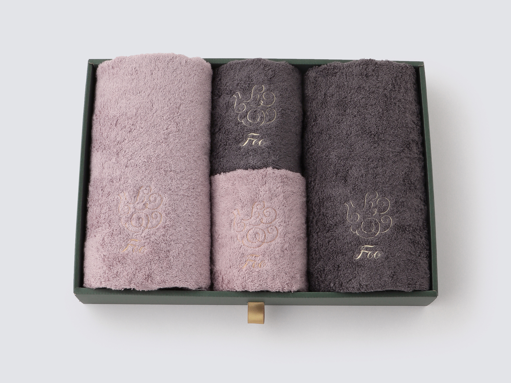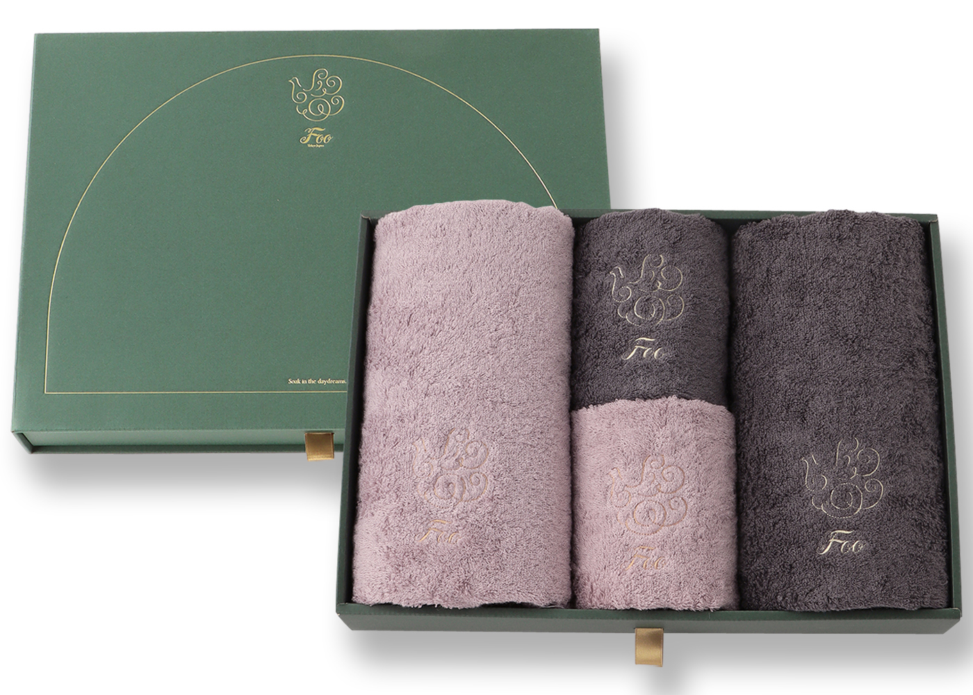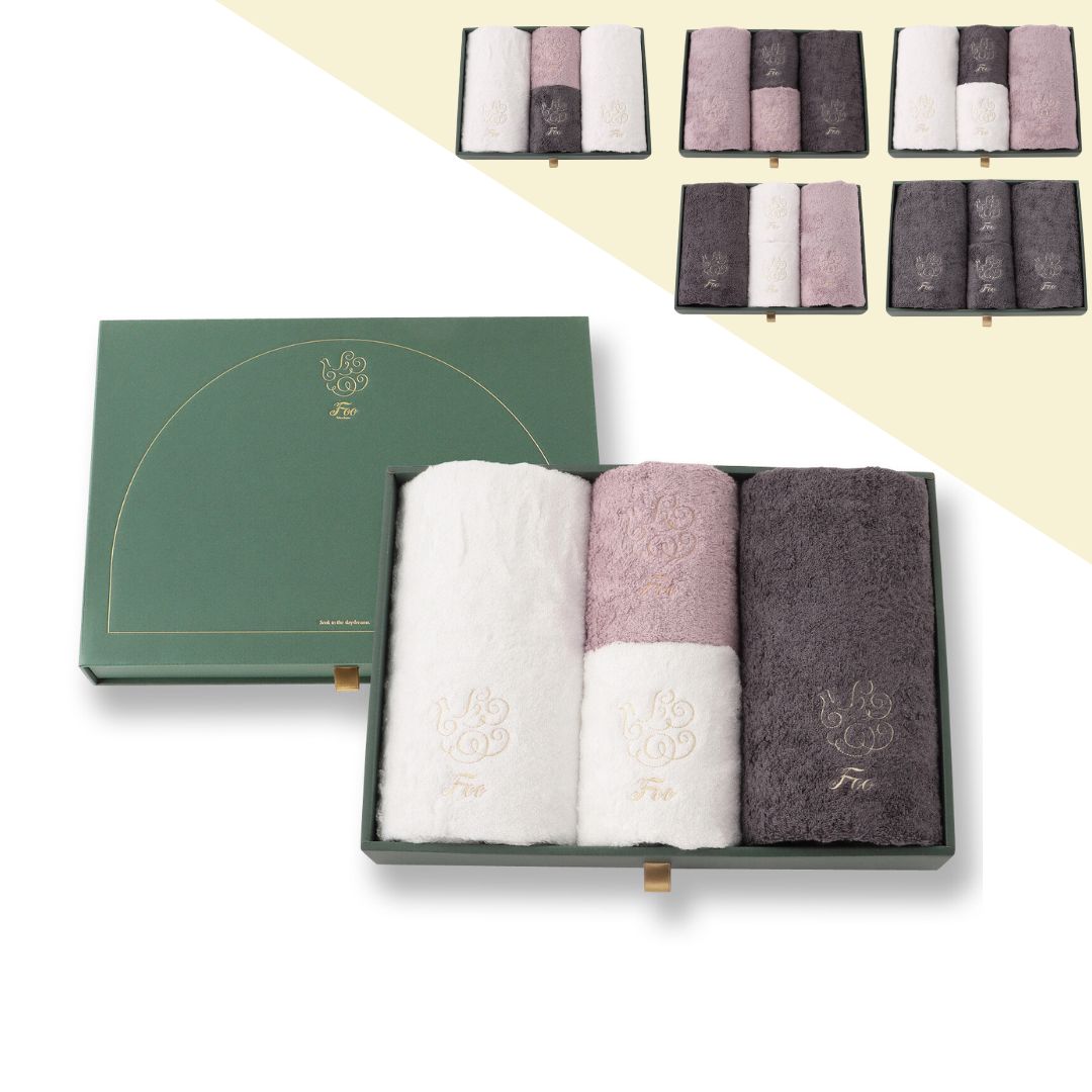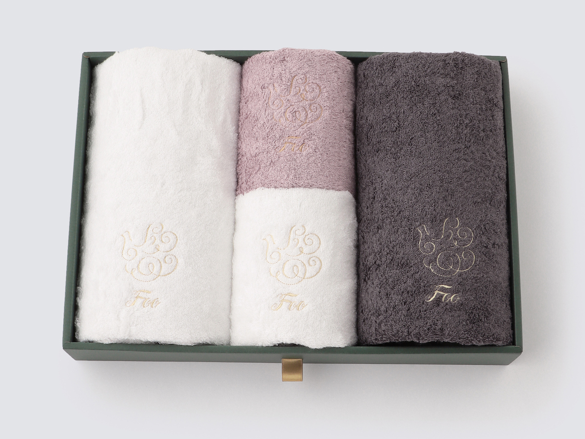 大口注文・法人のお問い合わせはこちらフェイスタオル2枚、ハンドタオル2枚が入ったギフトセットです。 Foo Tokyoオリジナルギフトボックスに入れてお届けいたします。