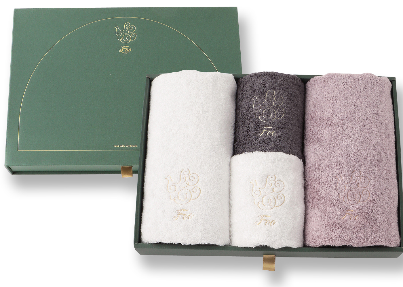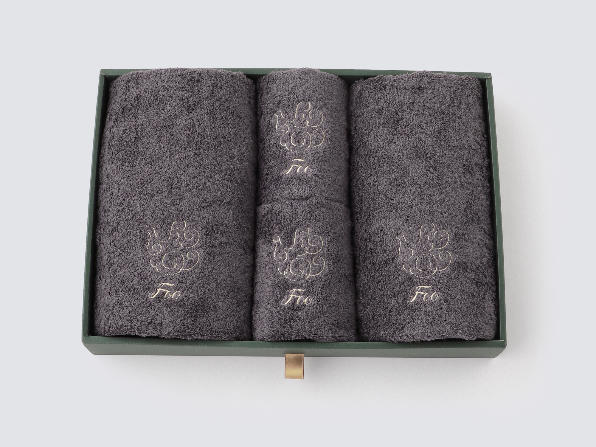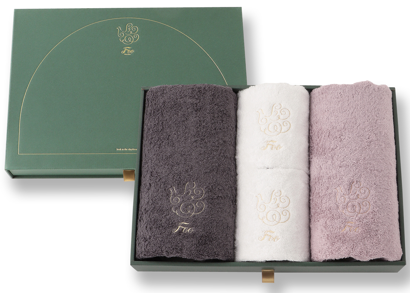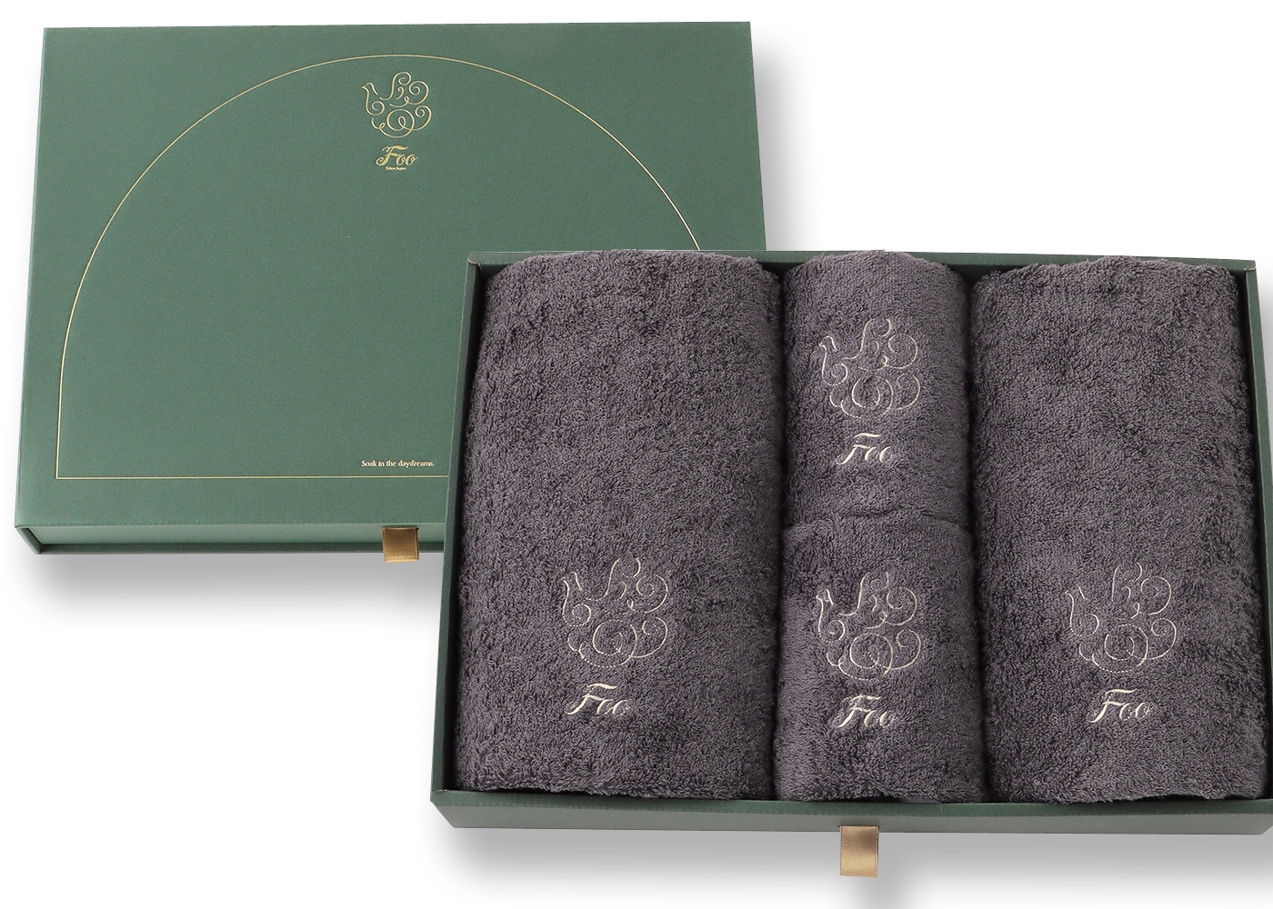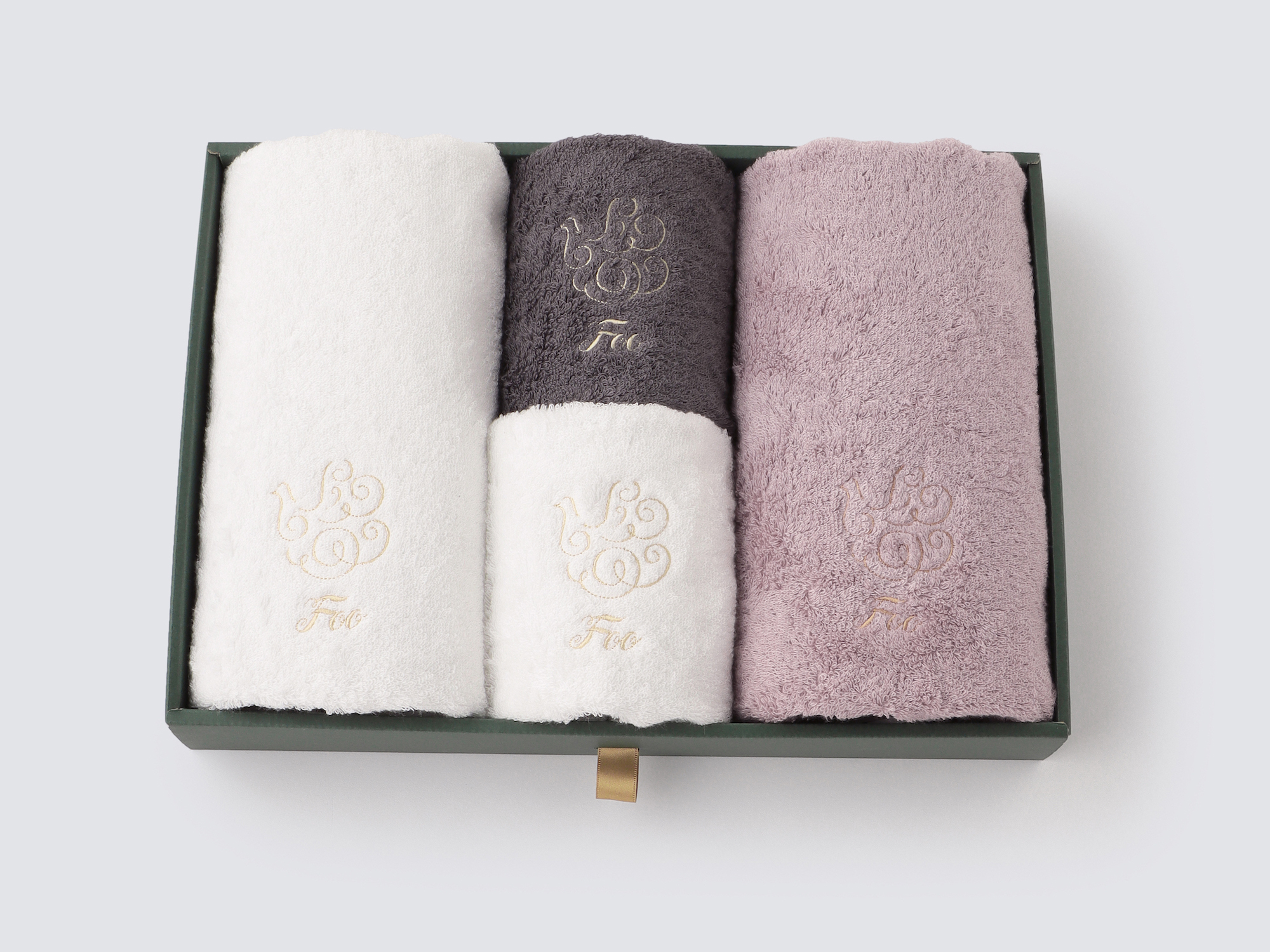 大口注文・法人のお問い合わせはこちらフェイスタオル2枚、ハンドタオル2枚が入ったギフトセットです。 Foo Tokyoオリジナルギフトボックスに入れてお届けいたします。