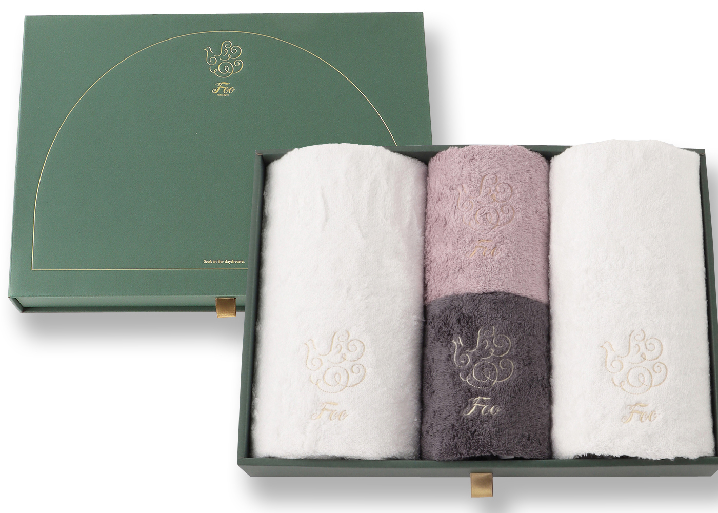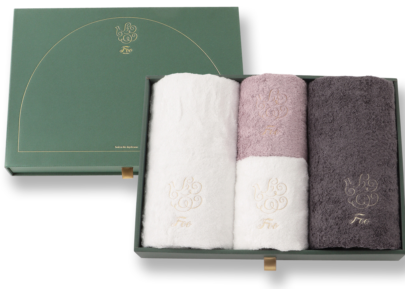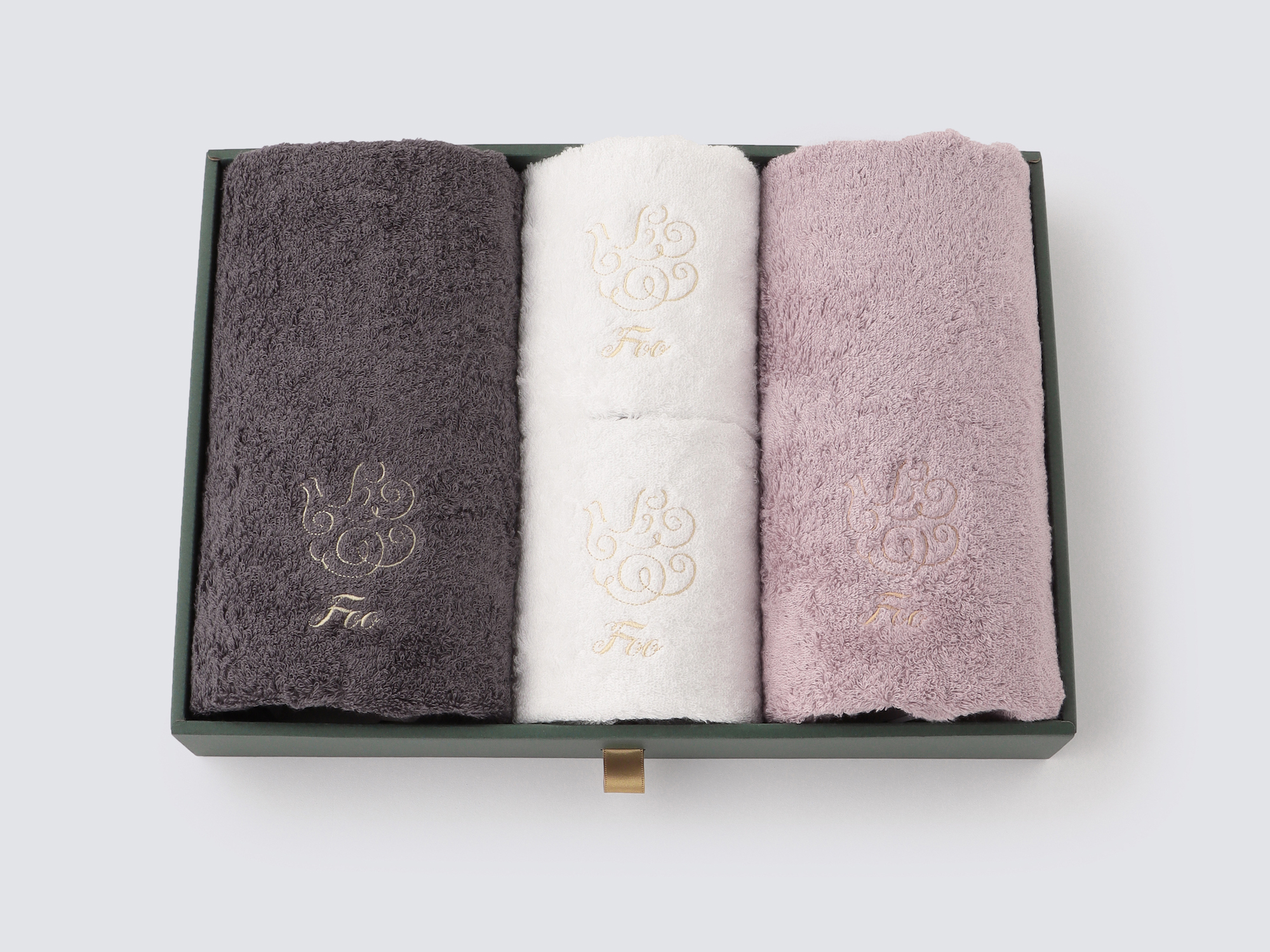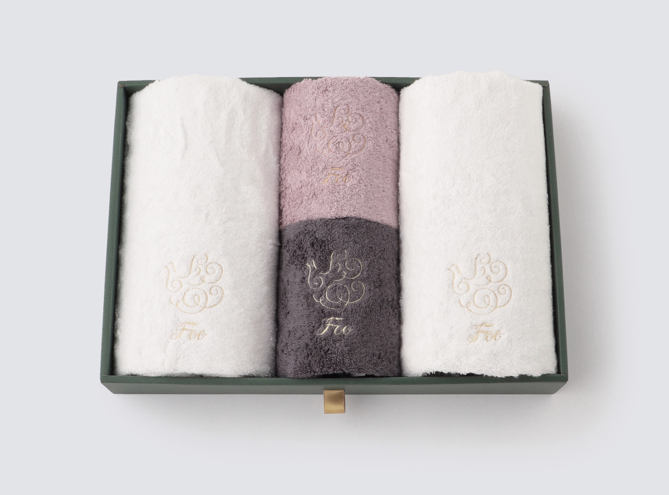 大口注文・法人のお問い合わせはこちらフェイスタオル2枚、ハンドタオル2枚が入ったギフトセットです。 Foo Tokyoオリジナルギフトボックスに入れてお届けいたします。
