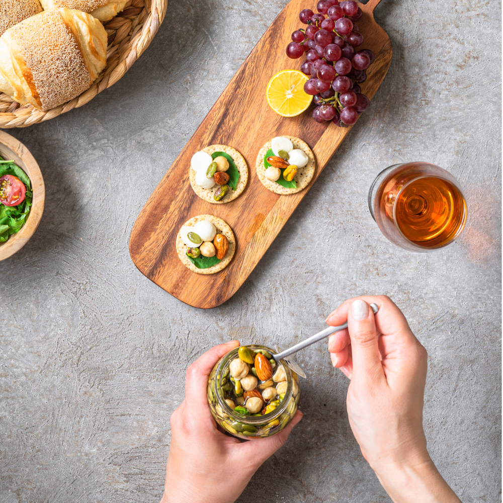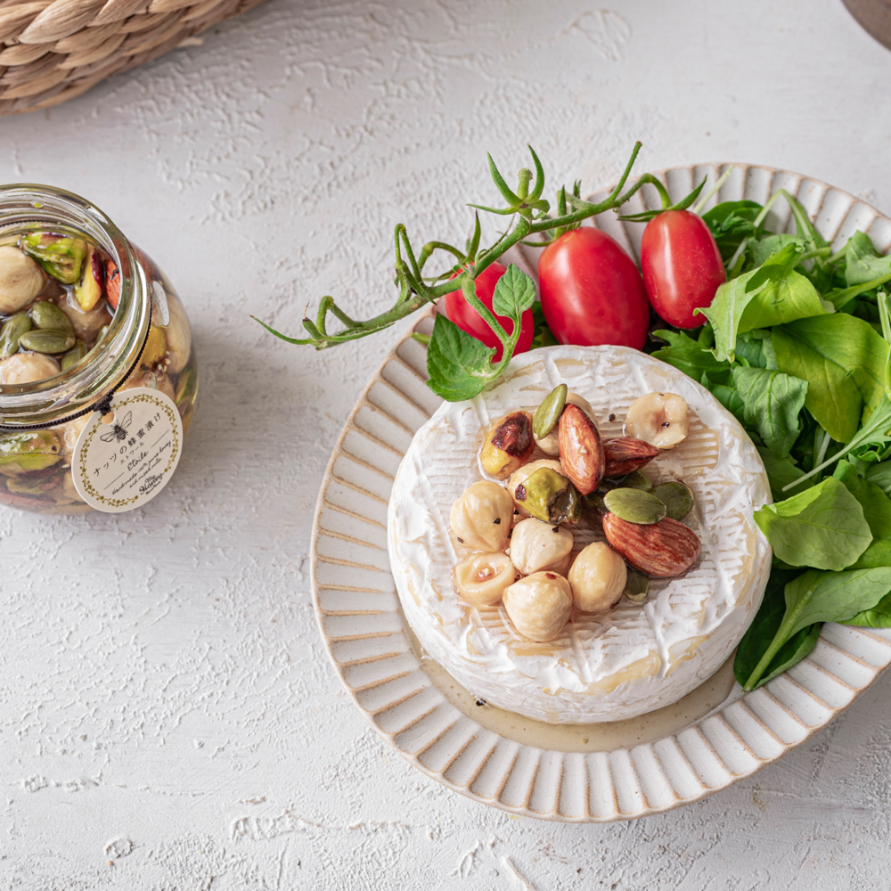 そのまま食べるのもおいしいですが、朝食のヨーグルトや、トーストやパンケーキに添えたり、ワインなどお酒のおつまみ、チーズに乗せてパーティーに、お料理や手作りスイーツなど、使い道はアイデア次第で無限に広がります。 スッキリとした甘さとナッツのカリカリ食感があとをひくおいしさです。 普段のお酒のおつまみにも、パーティでクラッカーに乗せても。