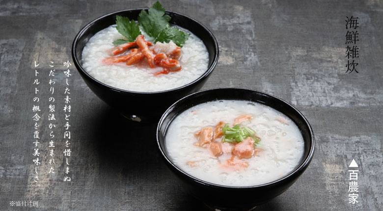 大口注文・法人のお問い合わせはこちら紅ずわいがにの脚肉がたっぷり入ったかに雑炊は和風だしで仕上げました。かき雑炊には瀬戸内産の牡蛎を使い、旨味がだしに染み出し優しいお味。紅鮭雑炊は、低温熟成させることで旨味を引き出した後に焼き上げることでコクと香ばしさを引き立たせています。