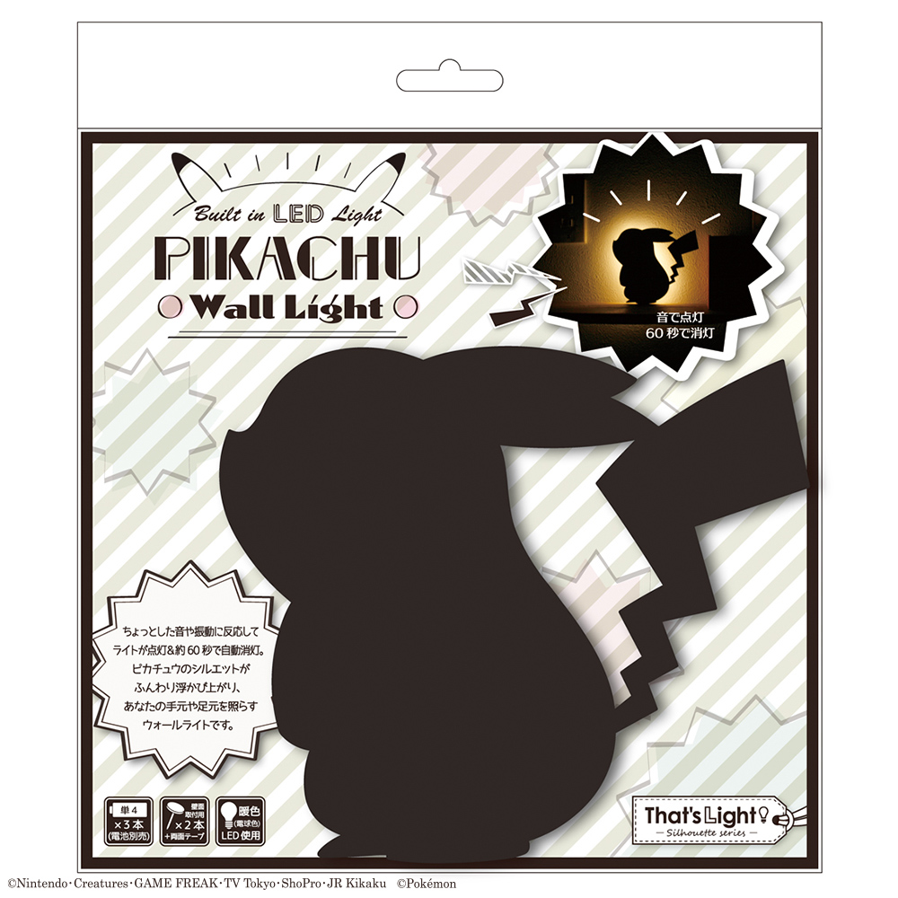 ポケモンのキャラクターたちがデザインされた壁面に取り付けるLEDウォールライトです。温かみのあるLEDの光が壁に反射し、ポケモンのシルエットがふんわり浮かび上がります。振動センサー付きなので音やちょっとした振動で点灯します。贈り物にはもちろん、ご自宅用にご利用ください。