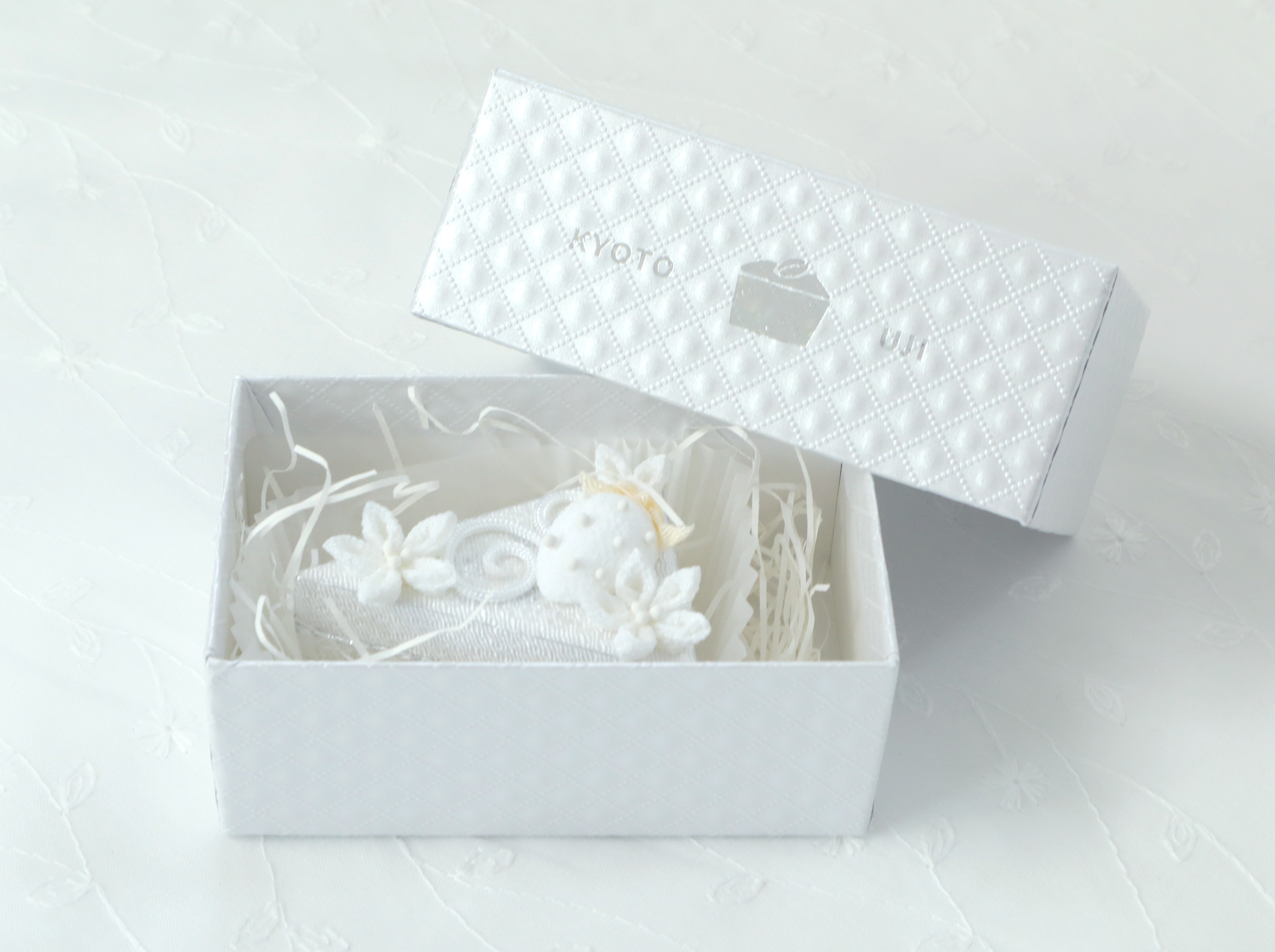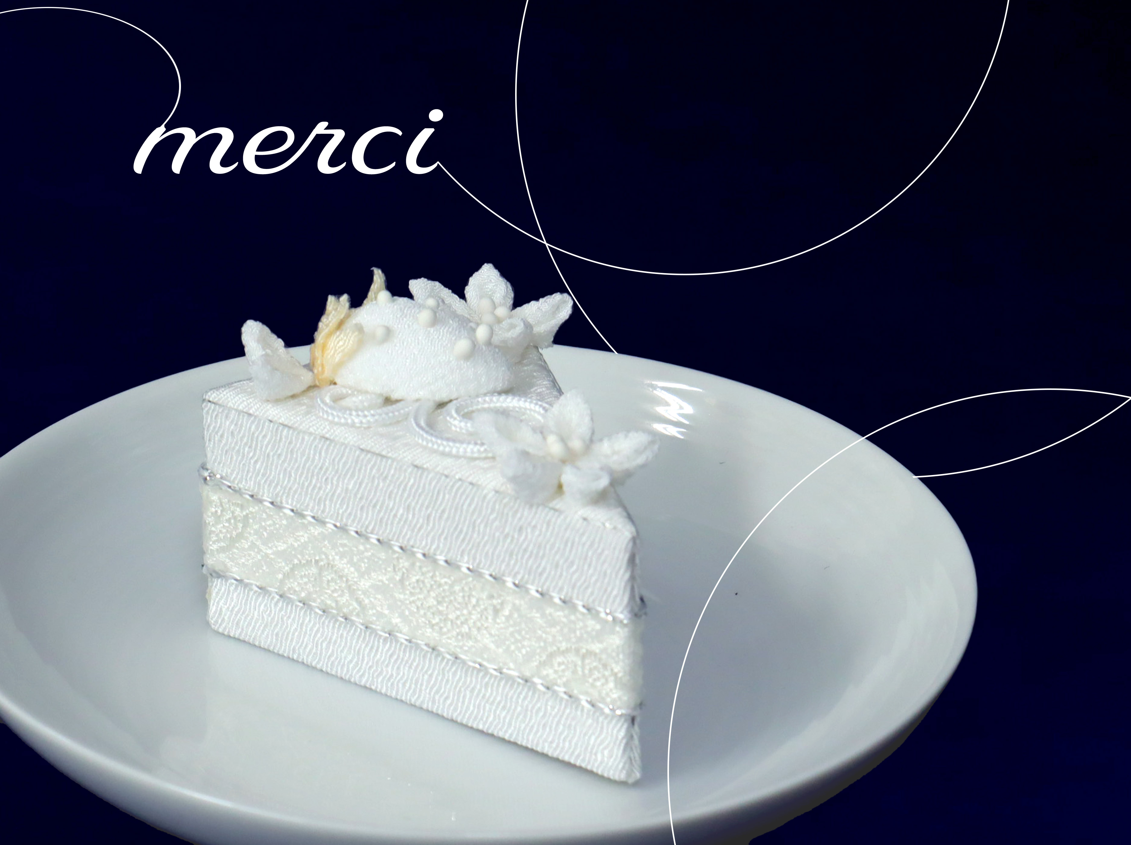 和の素材を使って洋を、と考えでき上がった、ちりめん素材を使ったスイーツです。大切な方へのギフトとしての商品を、とのコンセプトで生まれました。感謝の気持ちがそのまま「merci(メルシー)」という名に。ほんのり香る、バニラの甘い香りと共に“ありがとう”の気持ちを贈ります。