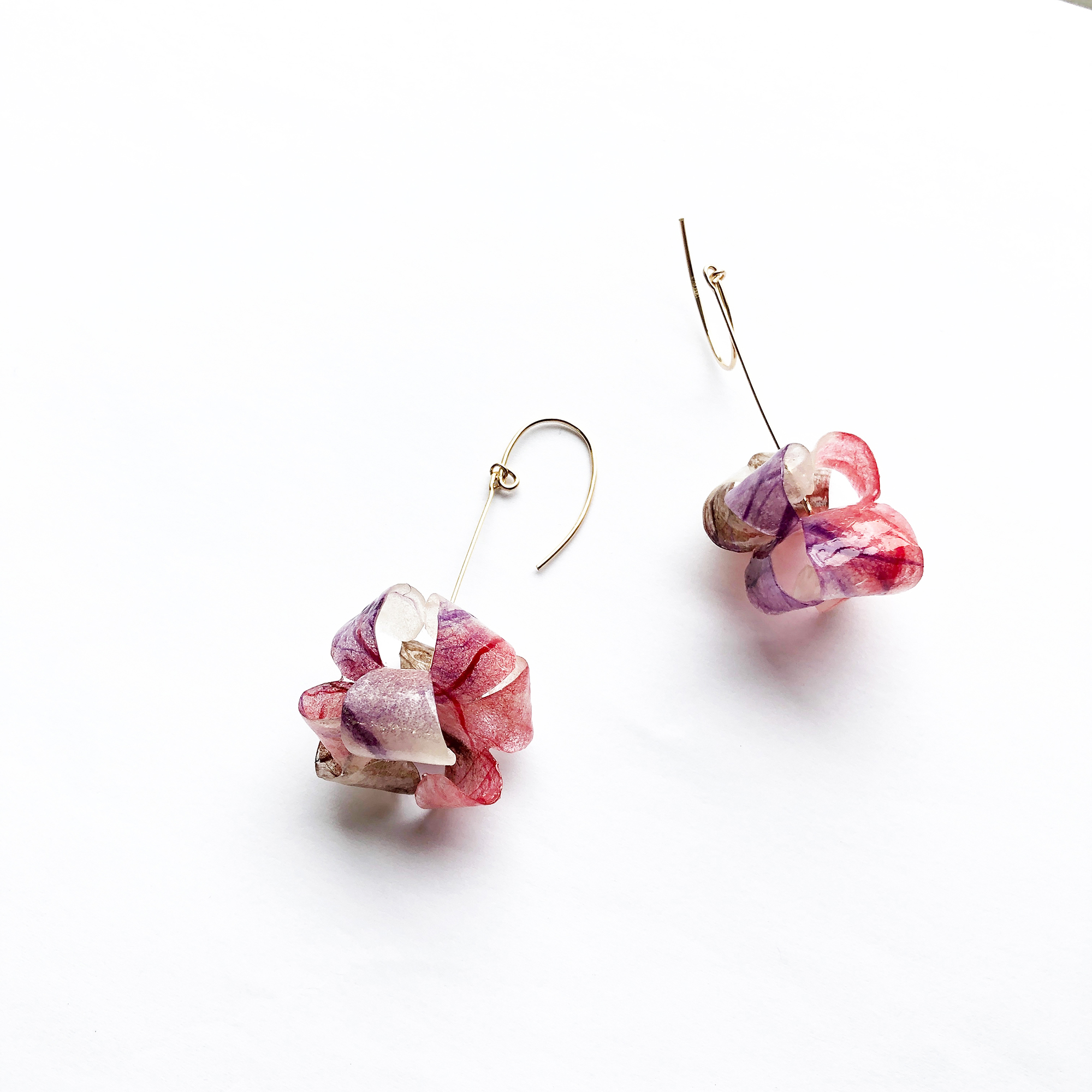 大口注文・法人のお問い合わせはこちら1300年の歴史ある石川県の伝統工芸「二俣和紙」を用いたアクセサリーです。染めてから形作り、樹脂を含浸させて固めています。不安定な一瞬を切り取ったような形状と独特な透け感が特徴。ふわりと軽く光をはらんで輝きます。 素材が同じなので、セットされている商品の組み合わせだけでなく、同系色の色合いなど、他の商品と組み替えてお使いいただいても楽しいです。 ※ハンドメイド商品につき、1点1点色や形状が異なります。1点ものとして楽しんでいただけると嬉しいです。どうぞご理解いただきますようお願いいたします。