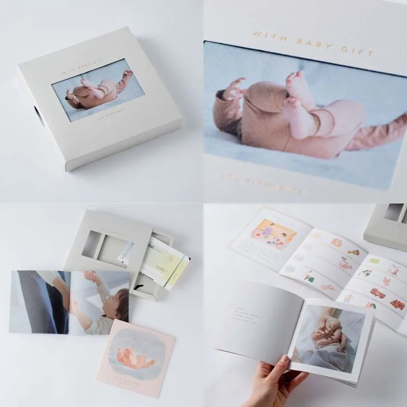 スリーブをスライドさせ、身箱を取り出しすとコンセプトブックと月齢別のラインナップ表が入っています。
