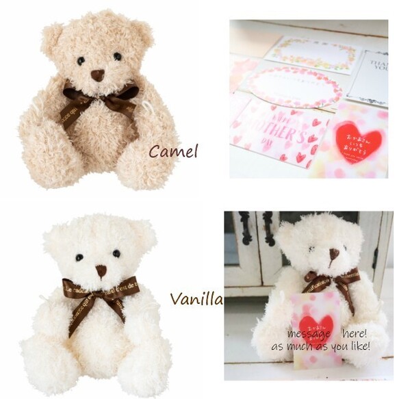 有料オプションでぬいぐるみをセットにしてプレゼントすることができます。 可愛らしい姿に思わずほっこりしてしまうこと間違いなしです。