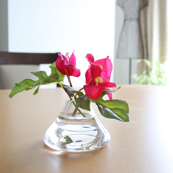 モンステラとブーゲンビリアを、マジカルウォーターに挿したフラワーアレンジです。マジカルウォーターは、本物のようにクリアで綺麗なお水にみえるシリコン素材の人工水なので、お水替えの必要もなく、お手入れ不要です。上品な雰囲気で、女性へのプレゼントにもおすすめです。