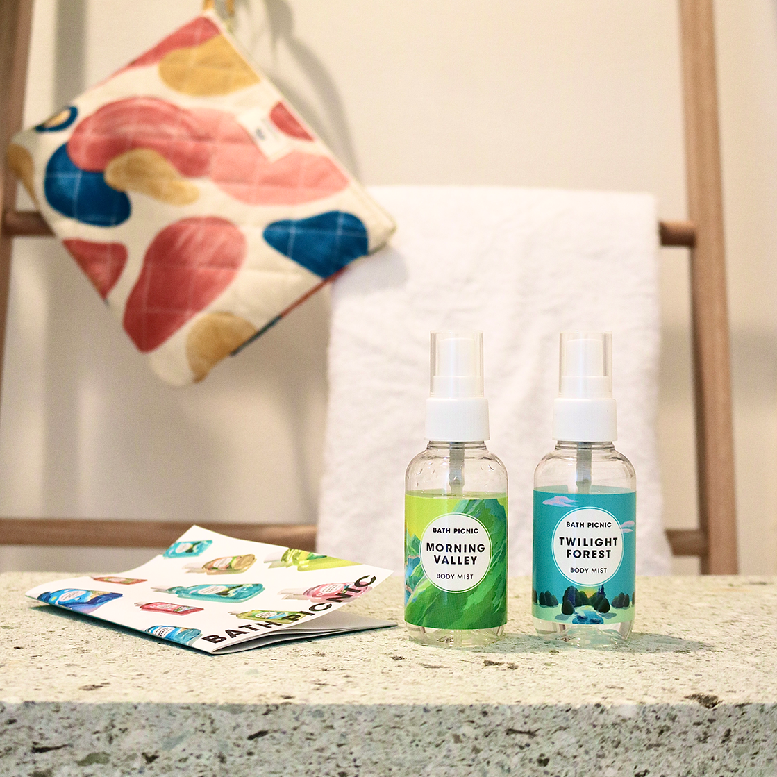 単にカラフルで香りのいい商品を扱うバスブランドではなく、良い香りを外へ連れ出せるような、おふろの外でもその香りを楽しめるような、お出かけするのが楽しくなるようなブランドや商品ラインアップ・デザインにしたい。そのような想いから、BATH PICNIC(バスピクニック)はバス・ボディ&アウトドアブランドとして一歩ずつ歩みを進めています。