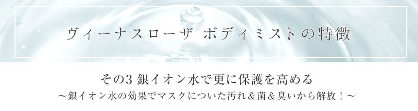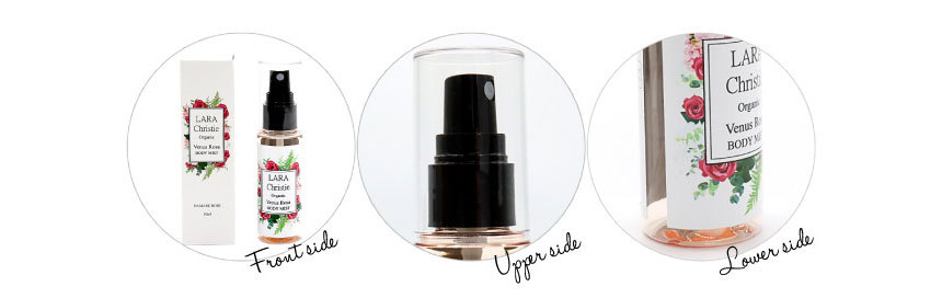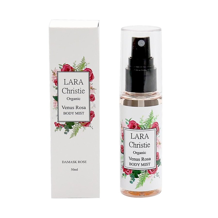 大口注文・法人のお問い合わせはこちらお肌への保護もできる1本3役 ララクリスティー ヴィーナスローザシリーズのボディミスト。優しく香るダマスクバラの香りで上品なローズを纏う香り美人に。 (1)保湿 7種のオーガニック認証成分と水溶性コラーゲン・ヒアルロン酸Na配合。(保湿) (2)保護 マスクが欠かせない新しい生活様式でも快適にお過ごしいただけるよう、お子様にもお使いいただける銀イオン水50%配合。 (3)香り 優しく香るダマスクバラ花水(香り)配合。高級感ある上品なローズの香り。