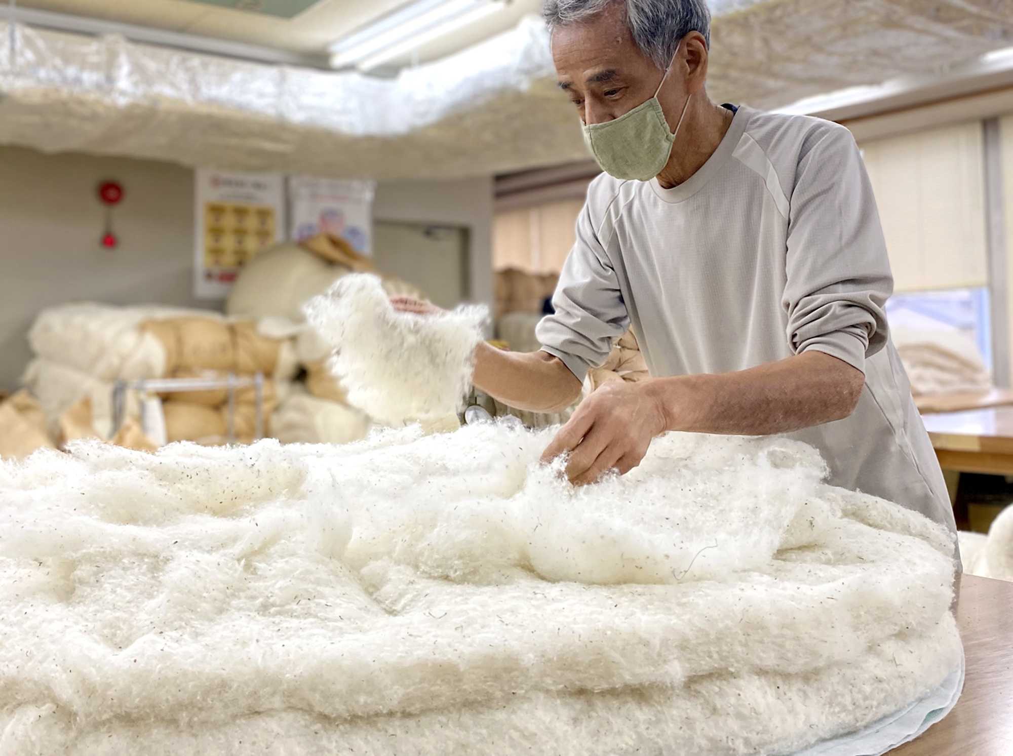 | 素材 | 側生地:綿100% 中わた:綿70%・ポリエステル30%のミックスわた |