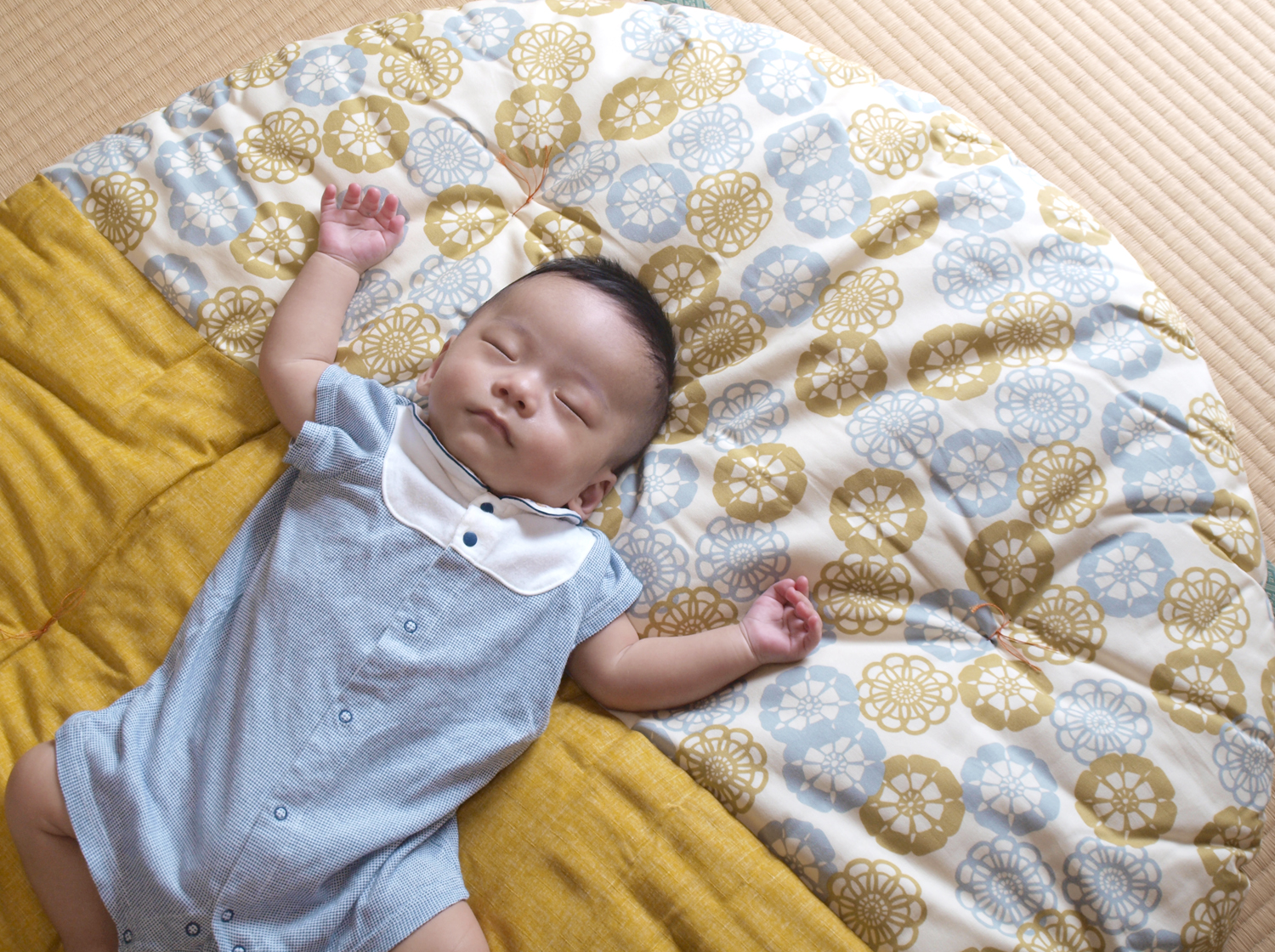 座布団、布団づくりの技を活かして、ライフスタイルにくつろぎをお届けする「洛中高岡屋」の職人がひとつひとつ丁寧に手づくりするせんべい座布団です。赤ちゃんのおむつ替え、お着替え、お昼寝に、大きくなったらプレーマットとしてもお使いいただけます。お世話になっている方への贈り物に。
