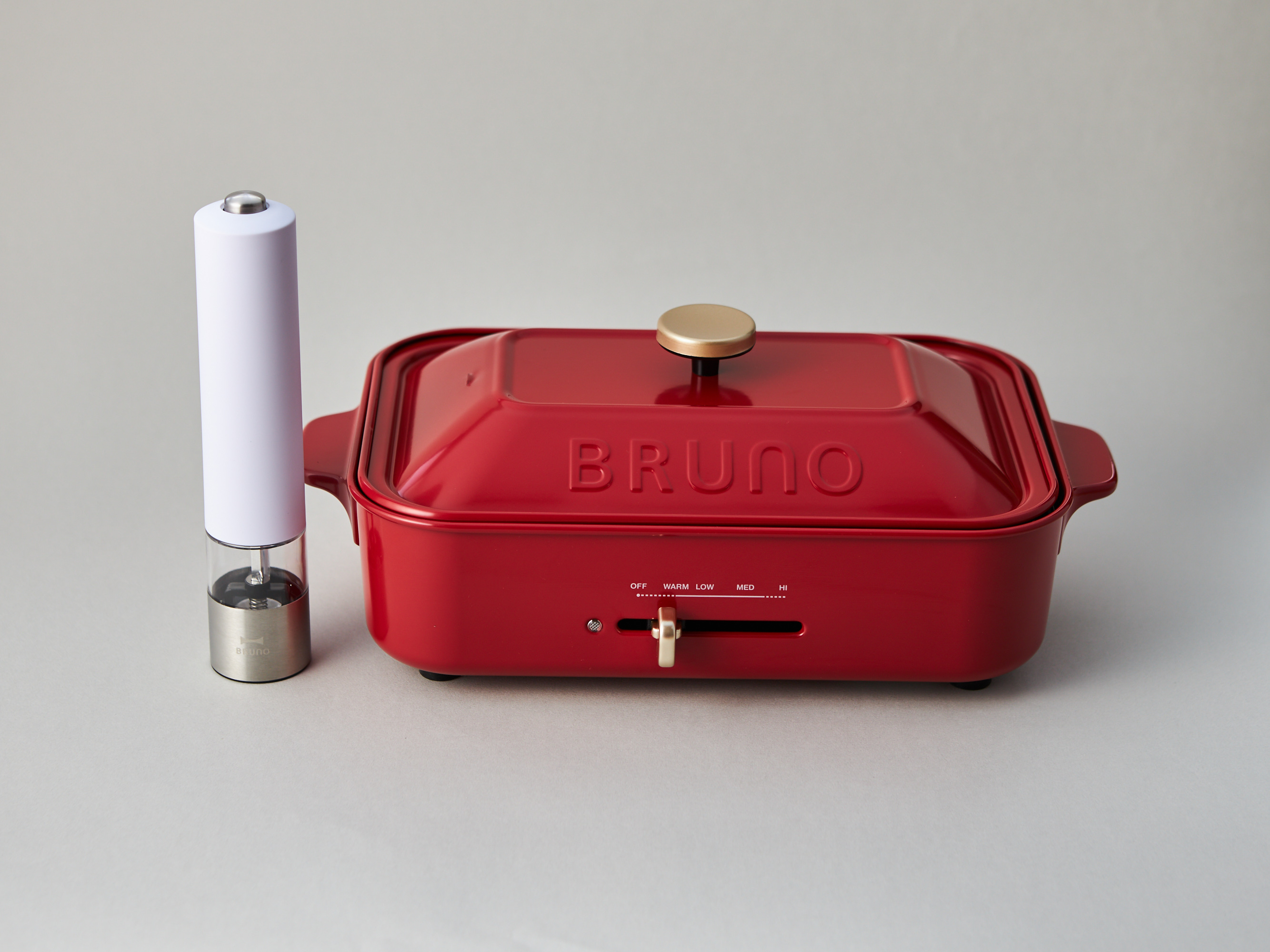 毎日の食卓を彩るテーブルウエアの新定番「BRUNO(ブルーノ)」から、今までのホットプレートにはなかった鋳物ホーローをイメージしたデザインのホットプレートと、ボタンひとつの簡単操作で調理中でも片手でスパイスが挽ける電動ミルをタンプ限定セットでお届け。