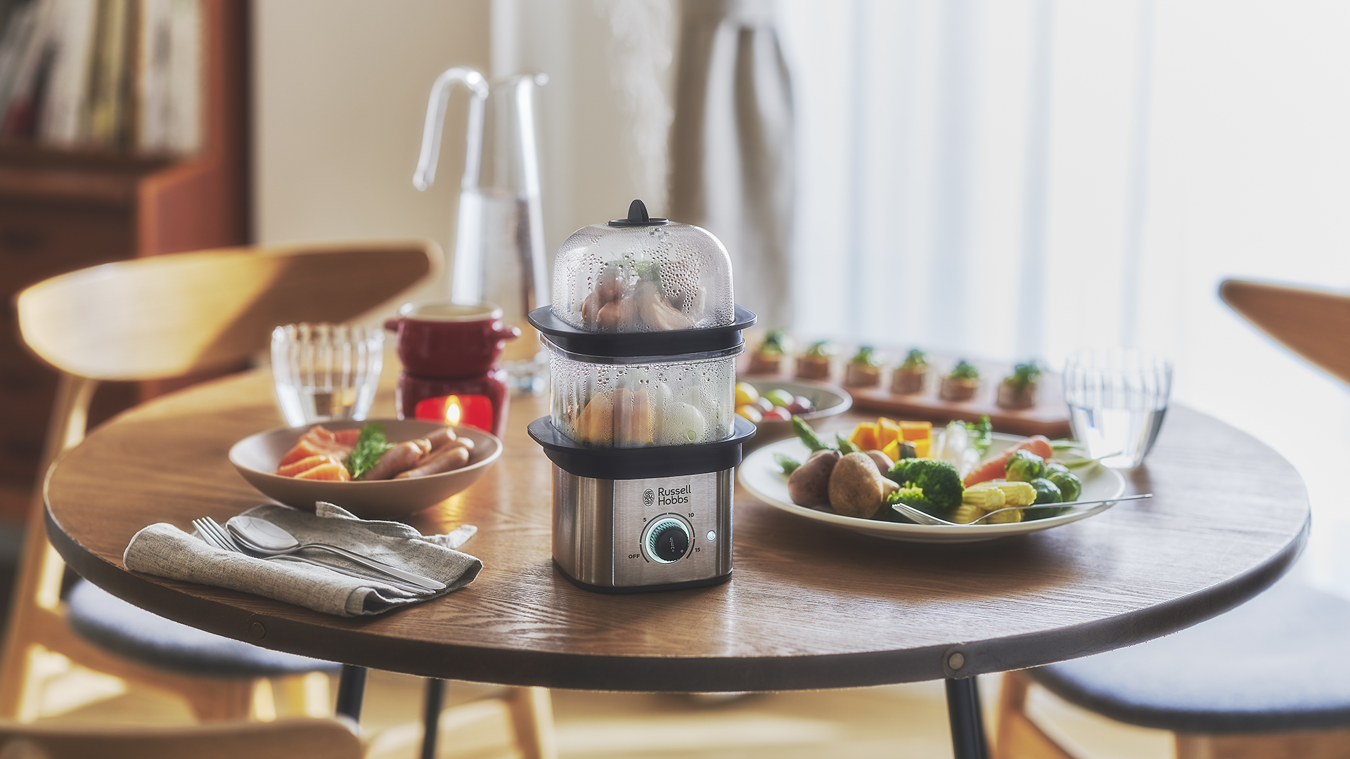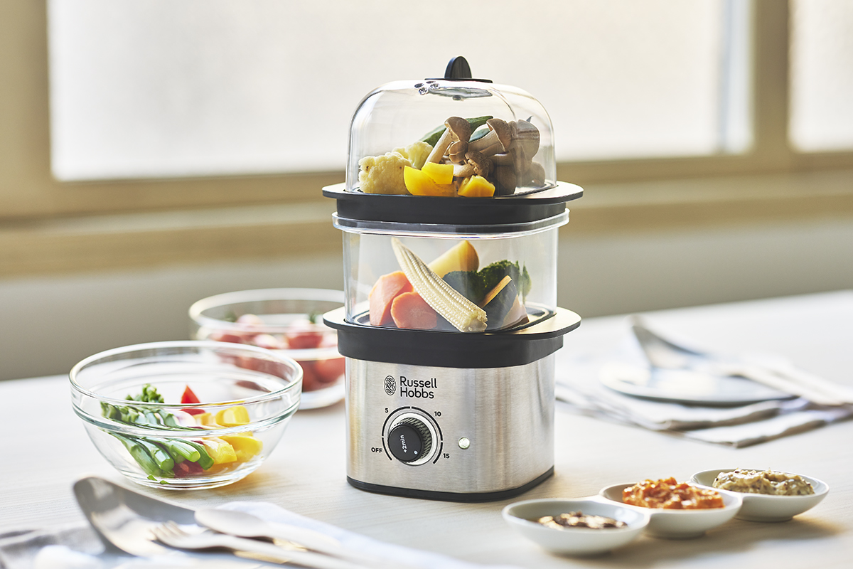 おいしい、ヘルシー、スピーディーに調理ができるコンパクトスチーマー。栄養価が高いけど、手間のかかりがちな蒸し料理が、簡単に、早く、おいしく、でき上がります。この小さいスチーマーが1台あるだけで、毎日の食生活が豊かになります。
