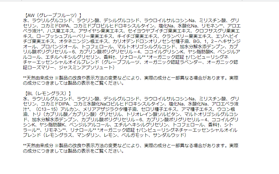 | 注意事項 | オイルなどの成分を含む商品は、航空危険物に含まれるため航空機に搭載することができません。そのため離島などの航空便を使用する地域にお住まいのかたへお届けの場合は、船便に変更するため1週間前後お届けが遅くなる可能性がございます。 |