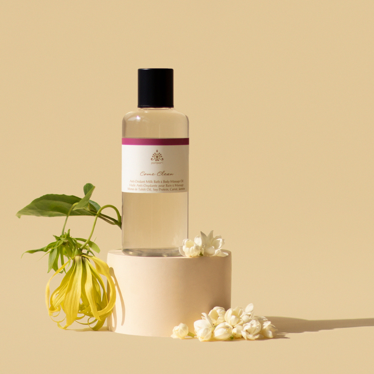 パンピューリを象徴する製品のひとつ。2003年に最初のPANPURI製品として誕生、長く愛されているアイテムです。若々しい輝きを与えながら肌をリフレッシュ。 モノイ・デ・タヒチオイル、ニンジン抽出物、ジャスミンオイルの繊細な香りを持つこのオイルで、毎日のバスタイムがリラックスタイムに。体を包み込み、五感をリラックスさせながらお肌をやわらかくします。疲れを癒したい時、幸福感に包まれたい時におすすめです。 ■天然由来植物成100% ■モノイデタヒチ・ニンジンオイル・ジャスミンオイル・エッセンシャルオイル ■Cruelty-free/合成香料不使用
