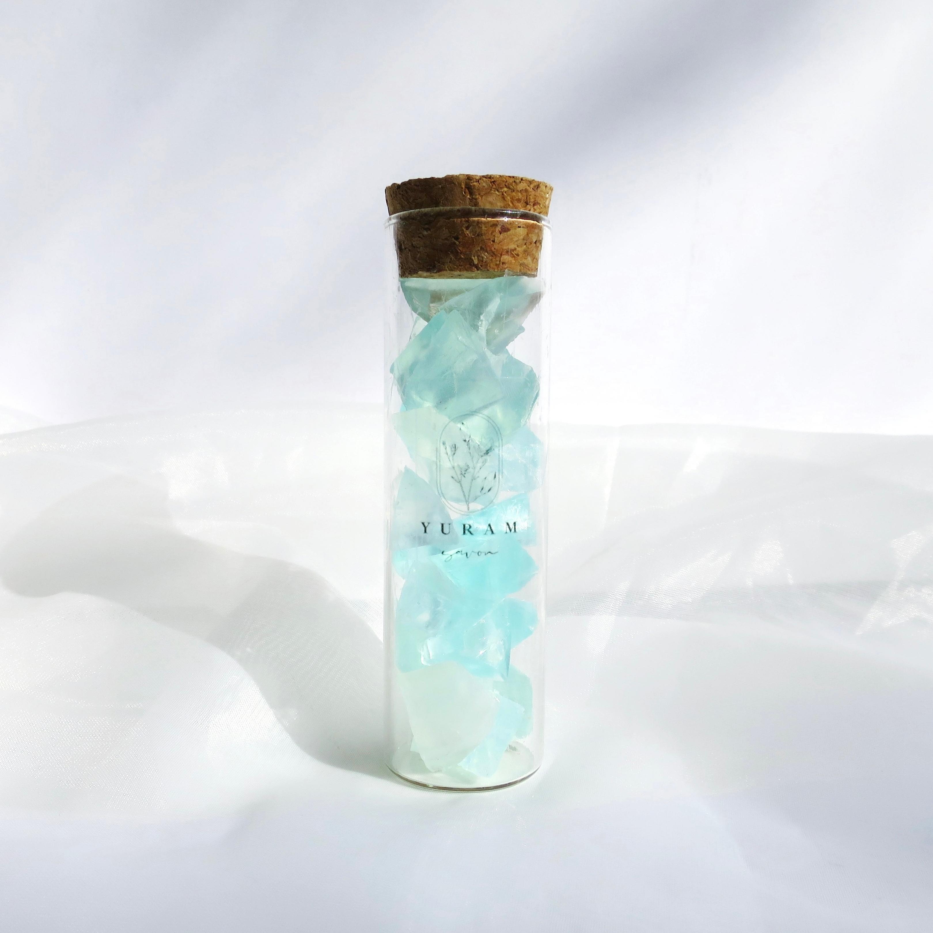 心のこもった手作りの作品で、多くの方に癒しと笑顔を届ける「YURAM(ユラム)」より、Bottle jewelをお届け。細かくカットされた石鹸が入っており、1瓶1瓶色合いを考えながらハンドメイドでお作りしています。ハーバリウムのようにインテリアとして飾るのがおすすめ。香りは厳選された5つの花の香りからお選びください。