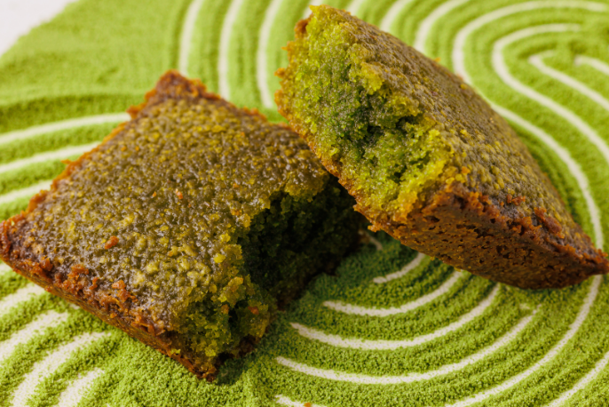フィナンシェに使用している抹茶は、京都宇治で評判高い茶園から直接仕入れた、良質な宇治抹茶。石臼挽きにこだわっているため、抹茶の上品な香り、鮮やかな色が特徴です。その抹茶をふんだんに使用し、「抹茶味」や「抹茶風味」ではなく、抹茶本来の旨みやコクをダイレクトに感じることができます。 ふくよかで旨味と優しい苦味が広がる抹茶フィナンシェをお楽しみください。