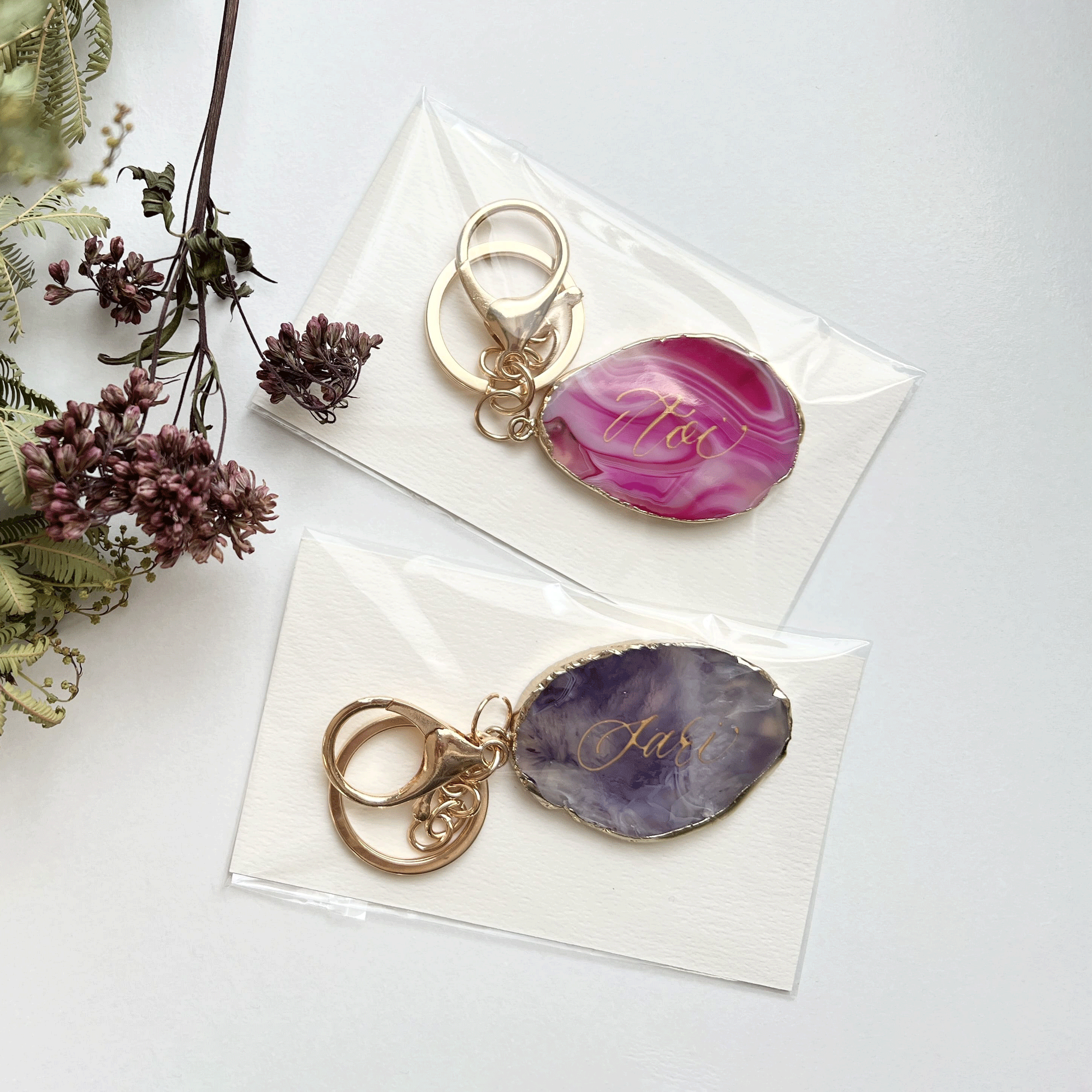 名入れゴールドリムキーホルダーペアセット