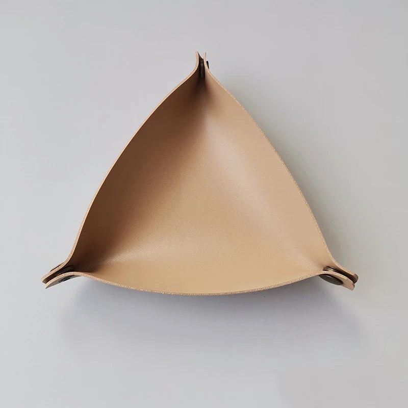 やわらかいレザーのトレイです。手軽に取り入れられるインテリア商品として作成いたしました。鍵などを入れる小物入れとして、玄関先に置いてご活用いただけます。シックなレザーの質感の、絶妙な色合いをお楽しみください。贈り物にはもちろん、ご自宅用にもおすすめです。