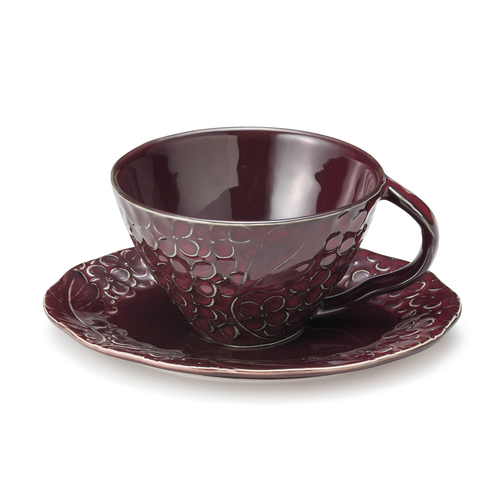 毎日の“食べる”を、もっと愉しくする「aito製作所(アイトーセイサクショ)」の選べるカップ&ソーサーセット。リュクスでエレガントな雰囲気。丁寧に彫られたレリーフの花模様と、しっとり落ち着いた色の器がテーブルシーンを優雅に演出します。