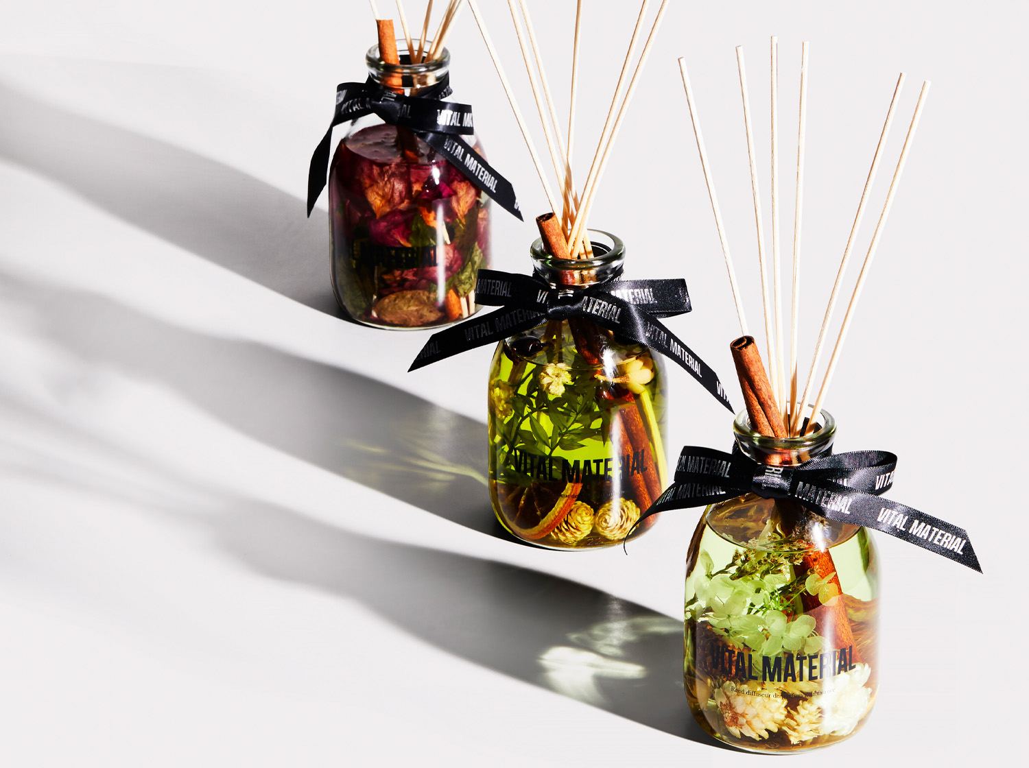 植物本来が持つ透明感やみずみずしさが凝縮されたアイテムを提供する「VITAL MATERIAL (ヴァイタルマテリアル )」がお届けするオリジナルブレンドのアロマオイルです。天然素材のドライハーブやドライフルーツを贅沢にボトルの中に閉じこめ、植物本来の持つ素材の香りが五感を癒します。