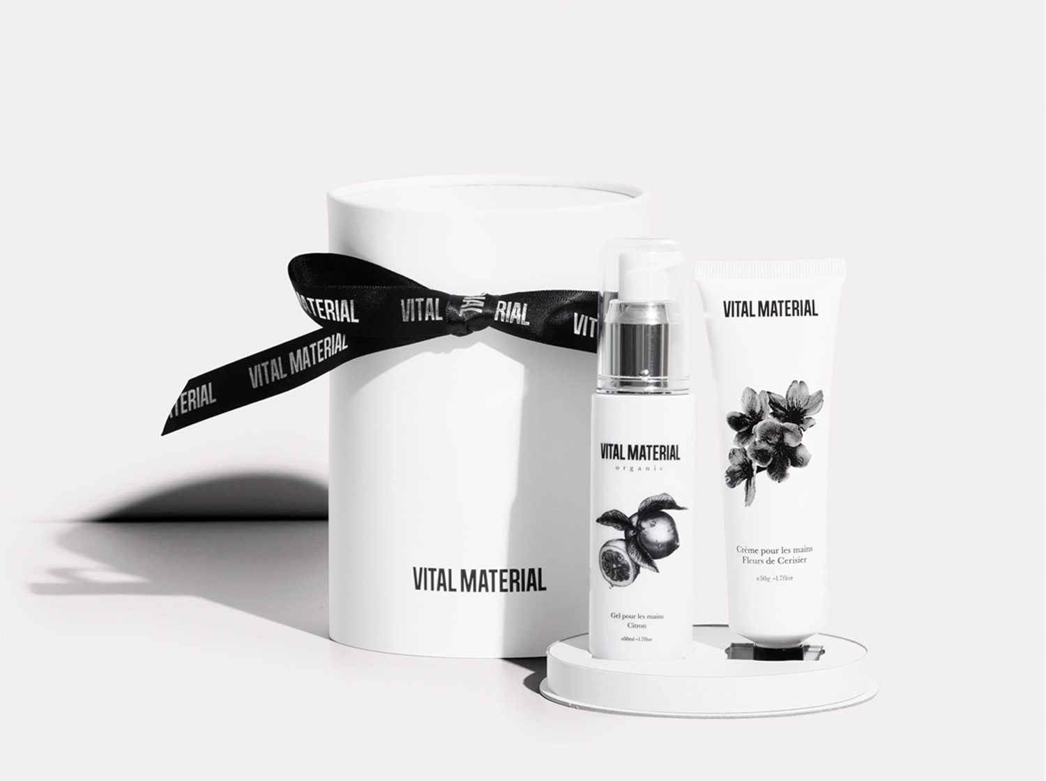 植物本来が持つ透明感やみずみずしさが凝縮されたアイテムを提供する「VITAL MATERIAL (ヴァイタルマテリアル )」がお届けするラウンドボックスセット。ハンドジェルは2種類から、ハンドクリームは3種類の香りからお好きなものを組み合わせることができます。