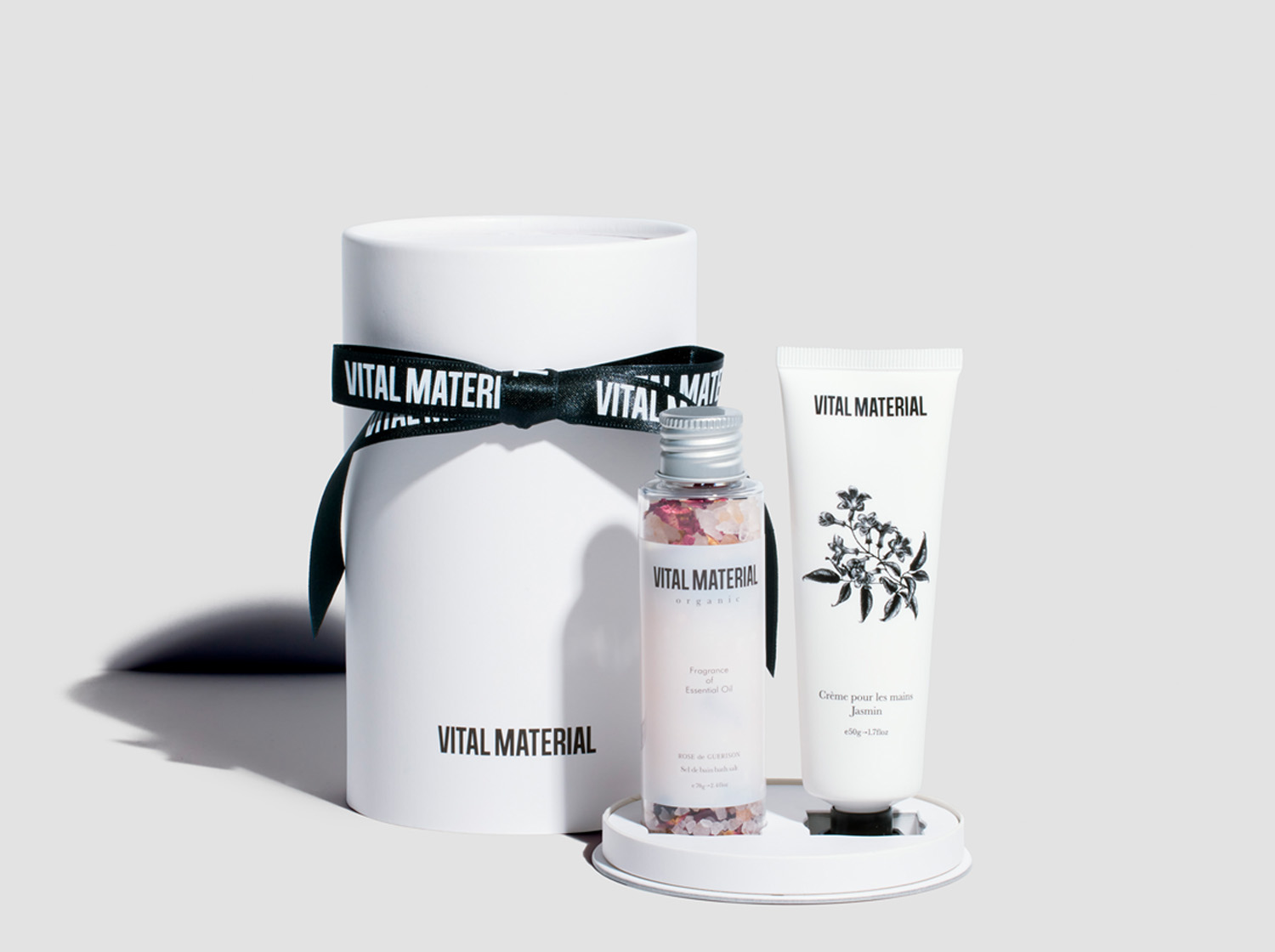 植物本来が持つ透明感やみずみずしさが凝縮されたアイテムを提供する「VITAL MATERIAL (ヴァイタルマテリアル )」がお届けするラウンドボックスセット。ハンドクリーム・バスソルトは各3種類の香りからお好きなものを組み合わせることができます。