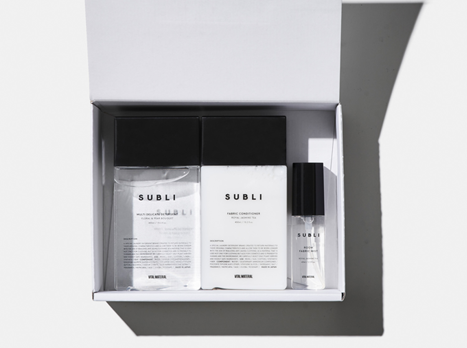 植物本来が持つ透明感やみずみずしさが凝縮されたアイテムを提供する「VITAL MATERIAL (ヴァイタルマテリアル )」がお届けするスクエアボックスセットH。SUBLIの洗剤・柔軟剤・ルーム&ファブリックミストはお好きな香りを3種類からお選びいただけます。