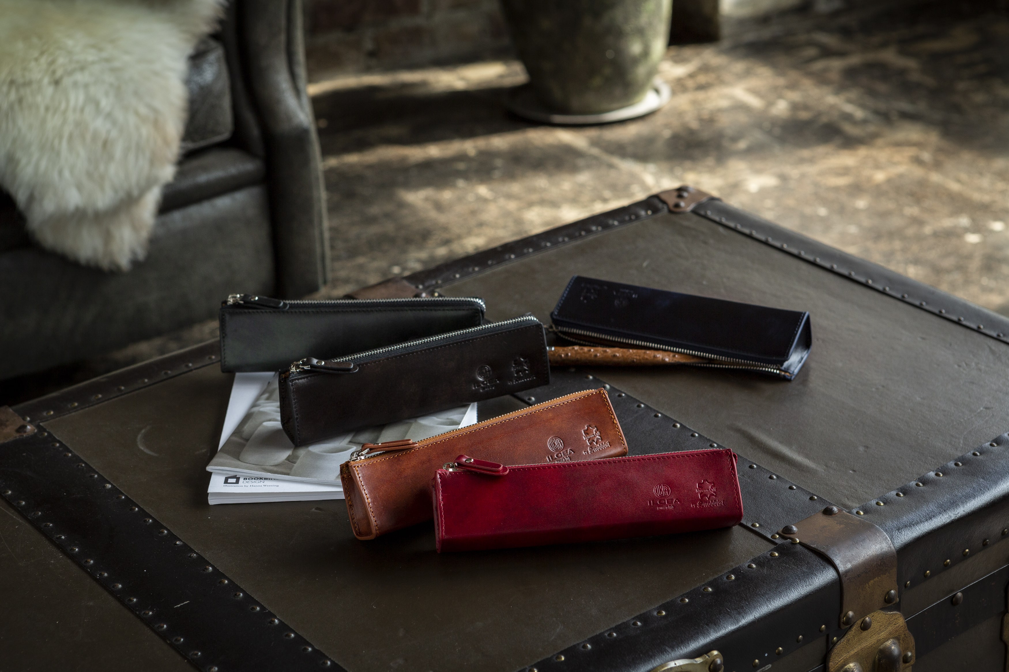 イタリア老舗タナリー・イルチア社による、高級靴にも使用される「ミュージアムカーフ」のスタンダードなペンケースです。筆記具を筆記具を5~7本収納できます。カーフ(仔牛)レザー特有のきめ細かい質感と柔らかな触感は、長く愛用するにふさわしい気品を携えています。