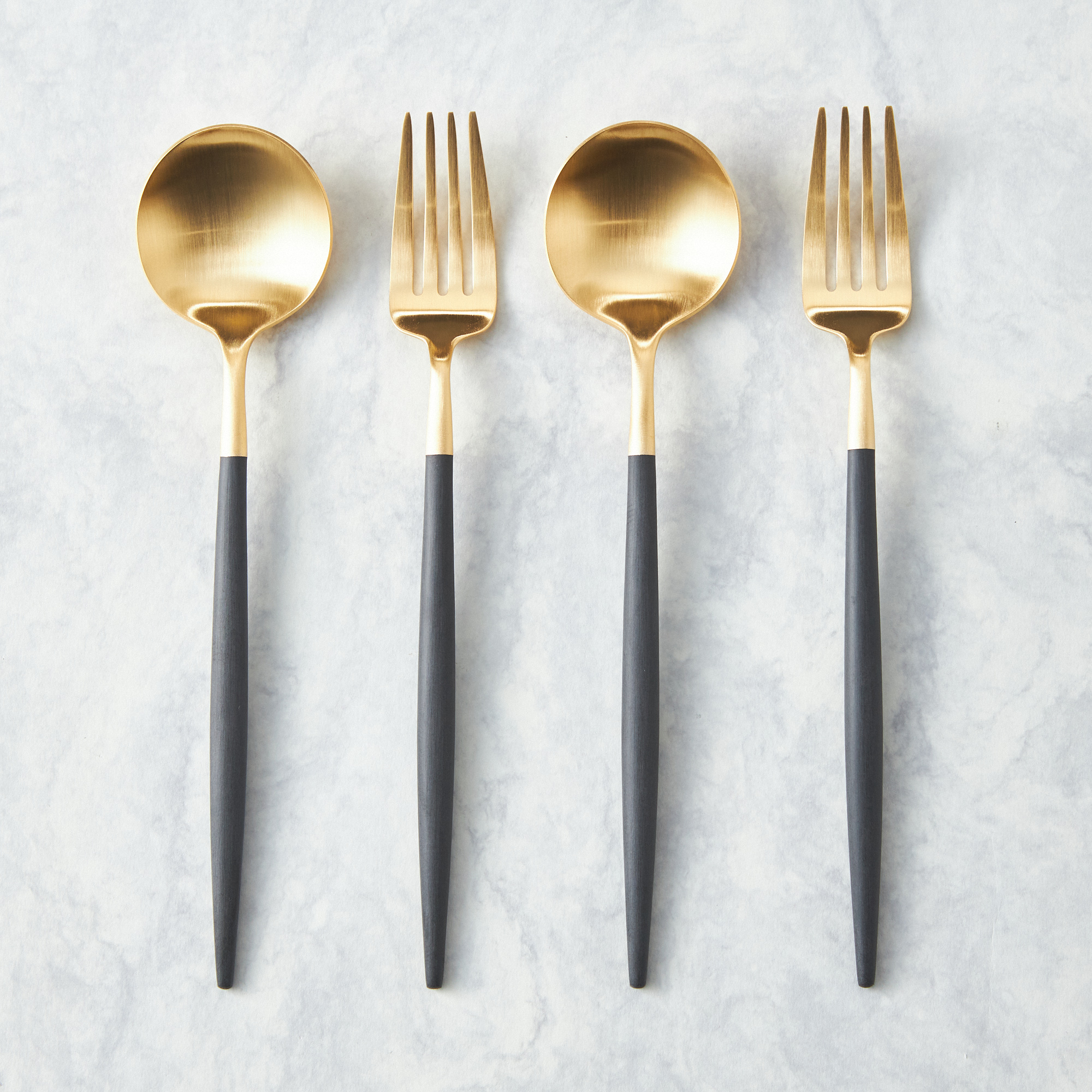 ポルトガルのカトラリーメーカー「Cutipol(クチポール)」のゴアブラックxゴールド4本セットです。