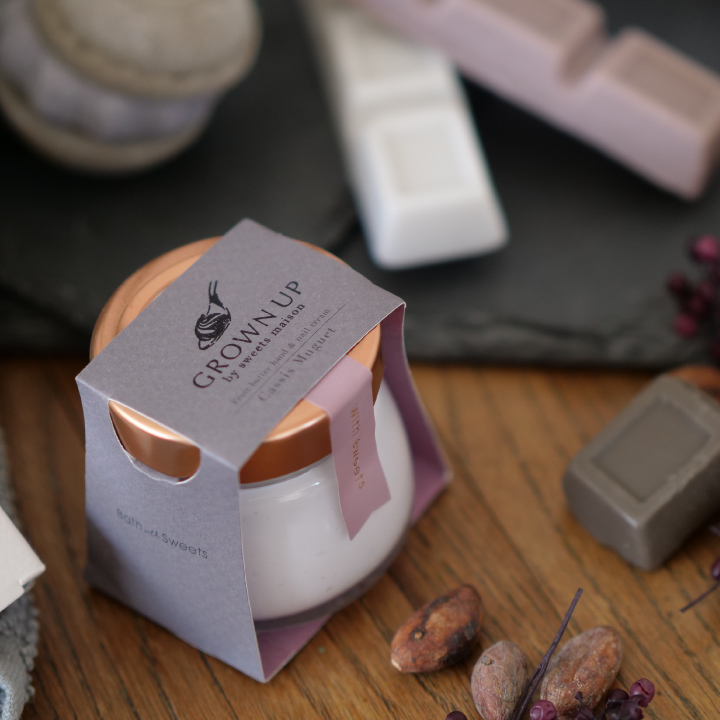 お菓子をモチーフとしたバスフレグランス「Sweets maison」から、 「GROWN UP by Sweeets Maison」のシリーズが新登場。 いくつになっても女性は可愛いものが大好き。 スウィーツで可愛いものはそのままに、保湿成分が贅沢に配合された ワンランク上のバス・ボディケア シリーズです。 自分へのご褒美やギフトにおすすめ。