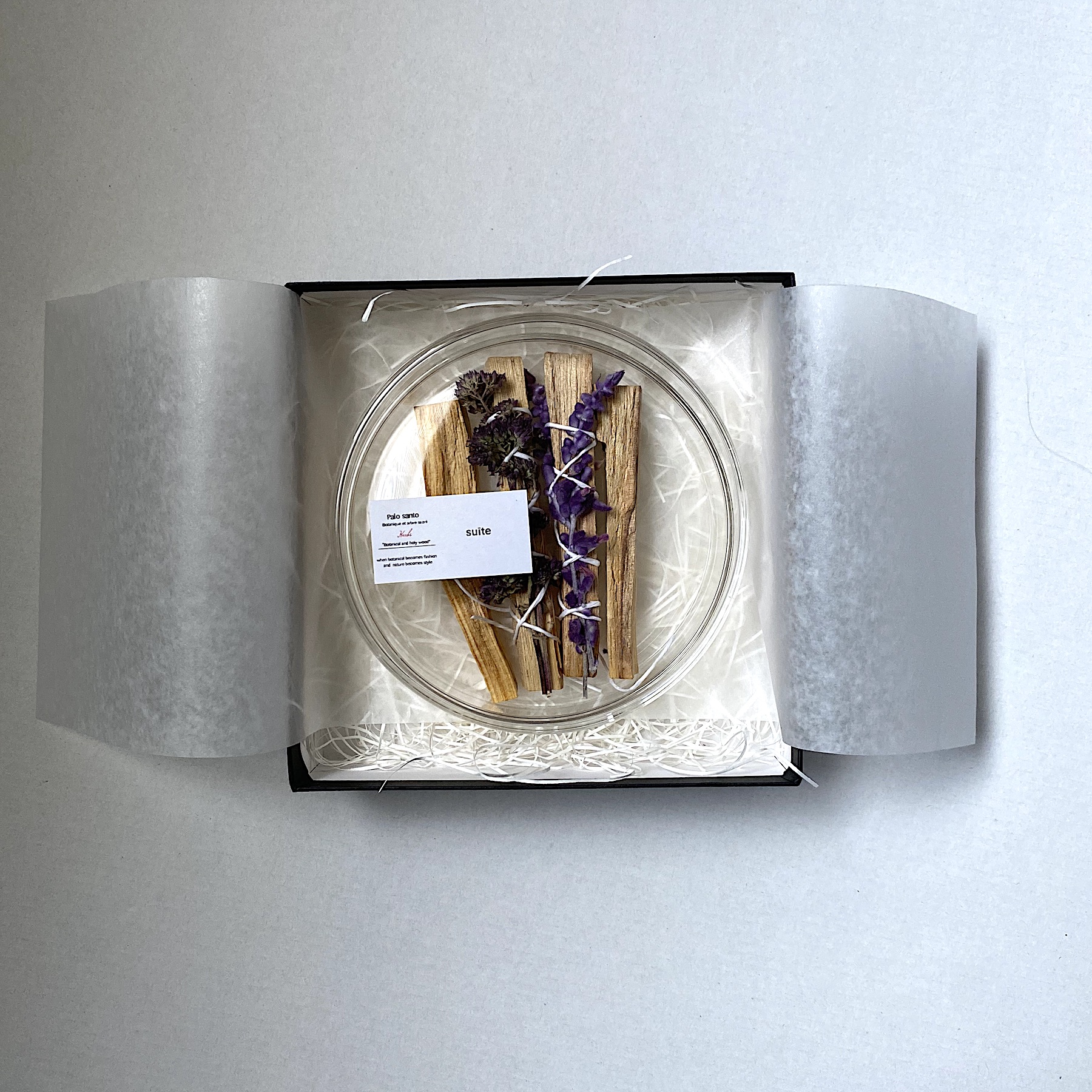 | 原材料 | パロサント(香木)、ドライフラワー |