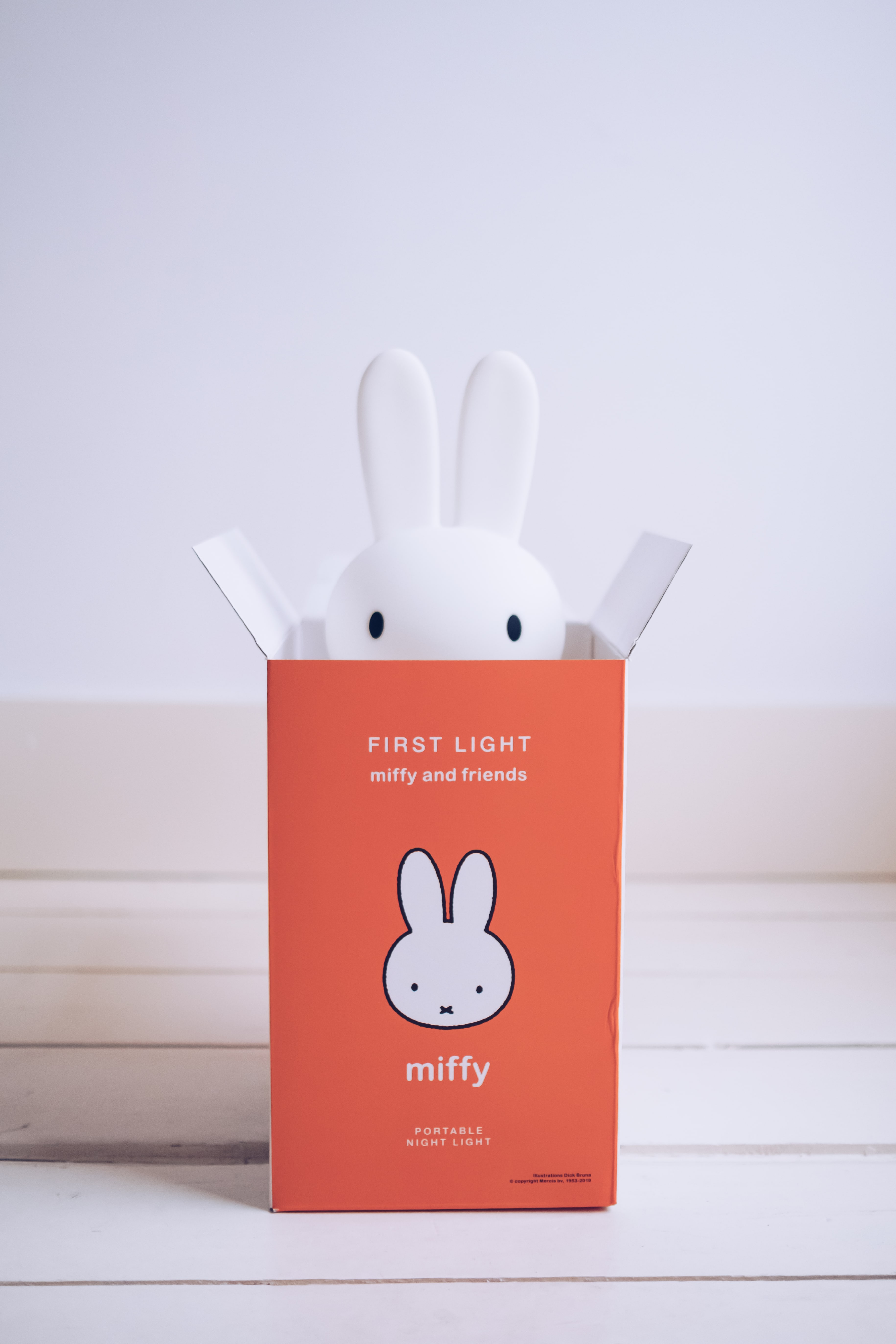 Dick Bruna氏のオリジナルイラストと、キャラクターのメインカラーを合わせたデザイン性の高いパッケージでプレゼントにも最適です。 パッケージには、それぞれファーストライトを飾っておける台も同封されています。