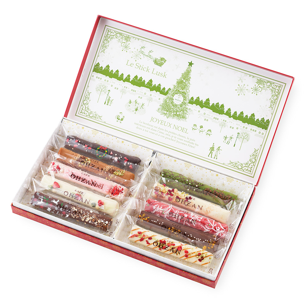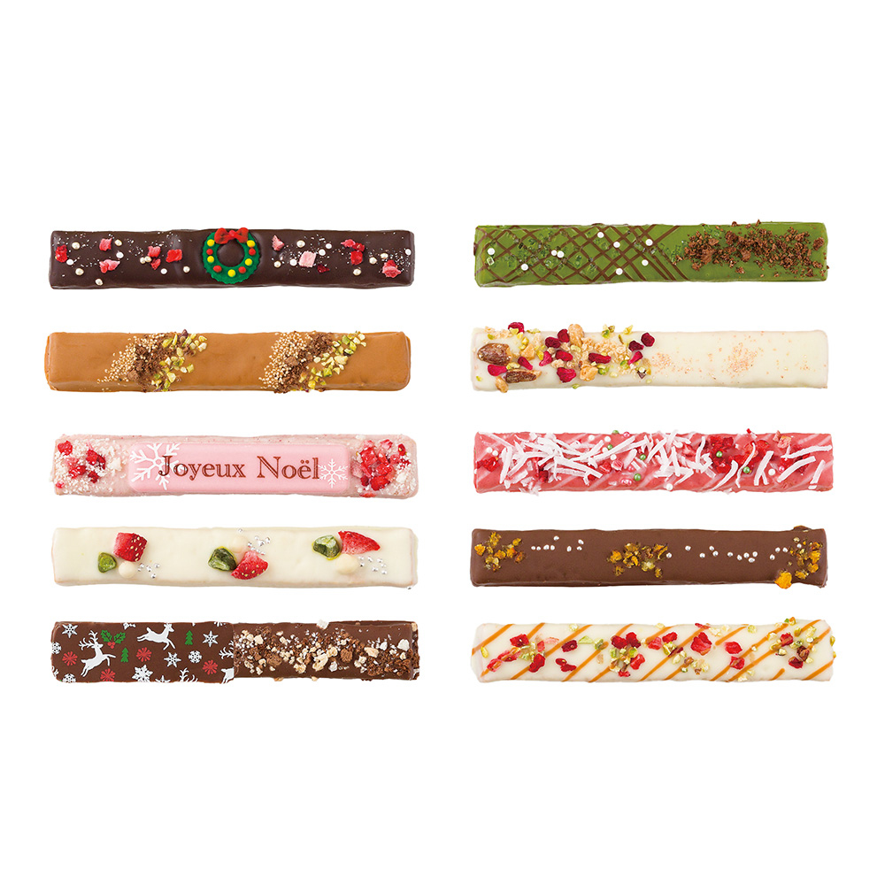 サクサク食感の生地にチョコレートをたっぷりとコーティングした、クリスマス限定のスティックラスクです。トナカイやリースをイメージしたスティックラスクなど、この季節らしいデザインになっています。