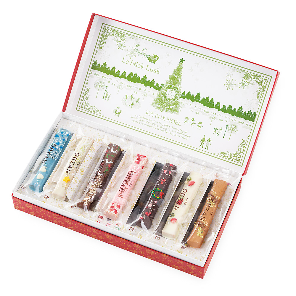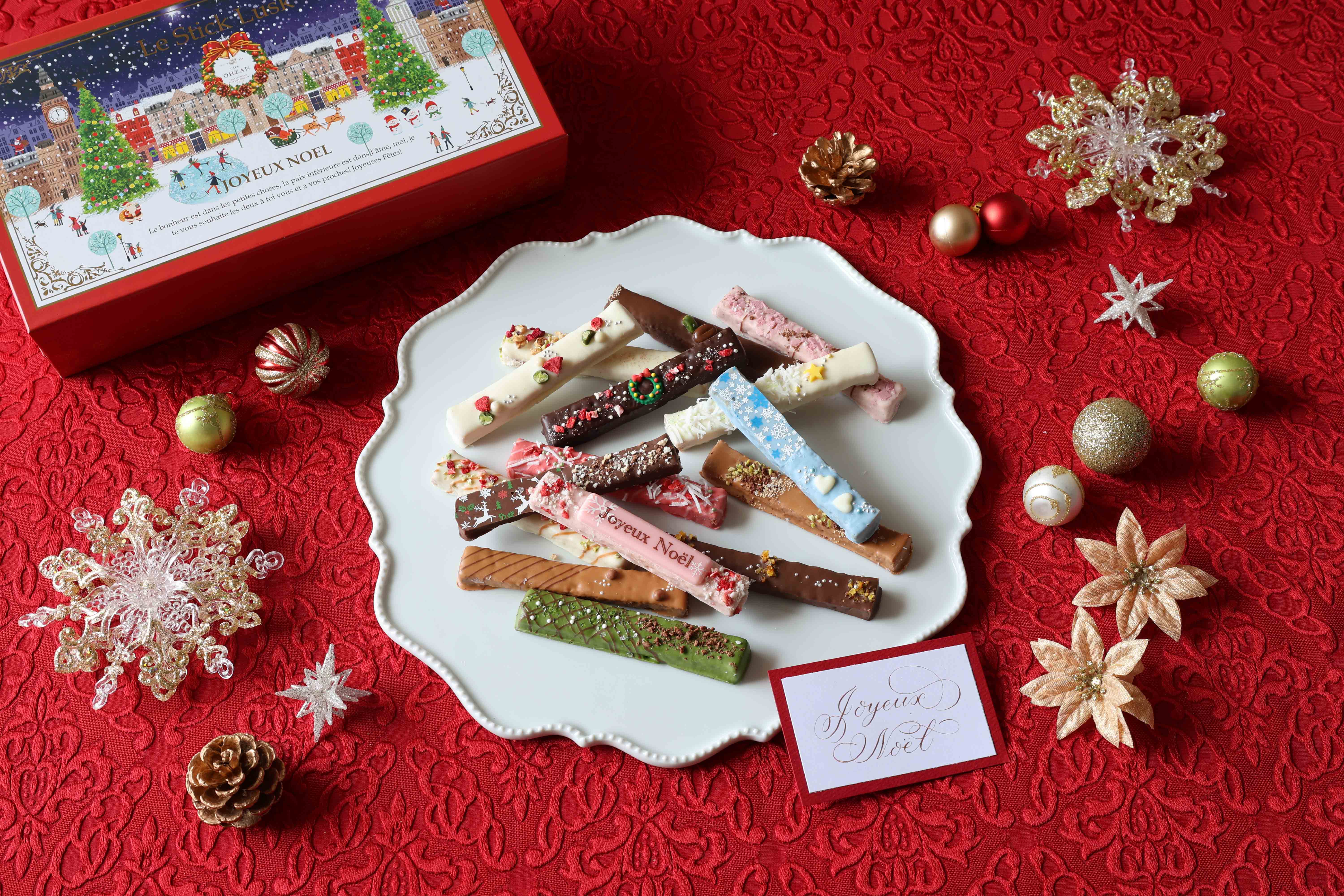 サクサク食感の生地にチョコレートをたっぷりとコーティングした、クリスマス限定のスティックラスクです。トナカイやリースをイメージしたスティックラスクなど、この季節らしいデザインになっています。