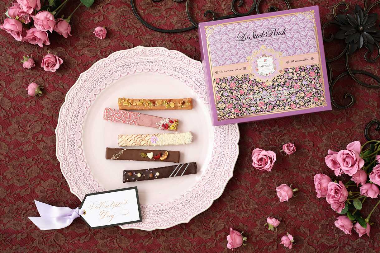 毎年ご好評をいただいている「CAFE OHZAN(カフェ オウザン)」から“うっとりするような、すてきな”を意味するRavissant(ラヴィソン)のラスクが登場。甘さを少し控えたローズピンクを使うことで、落ち着いた品のある雰囲気を演出。ロマンティックを抑えめにクラシカルに“大人感”があるデザインにしました。