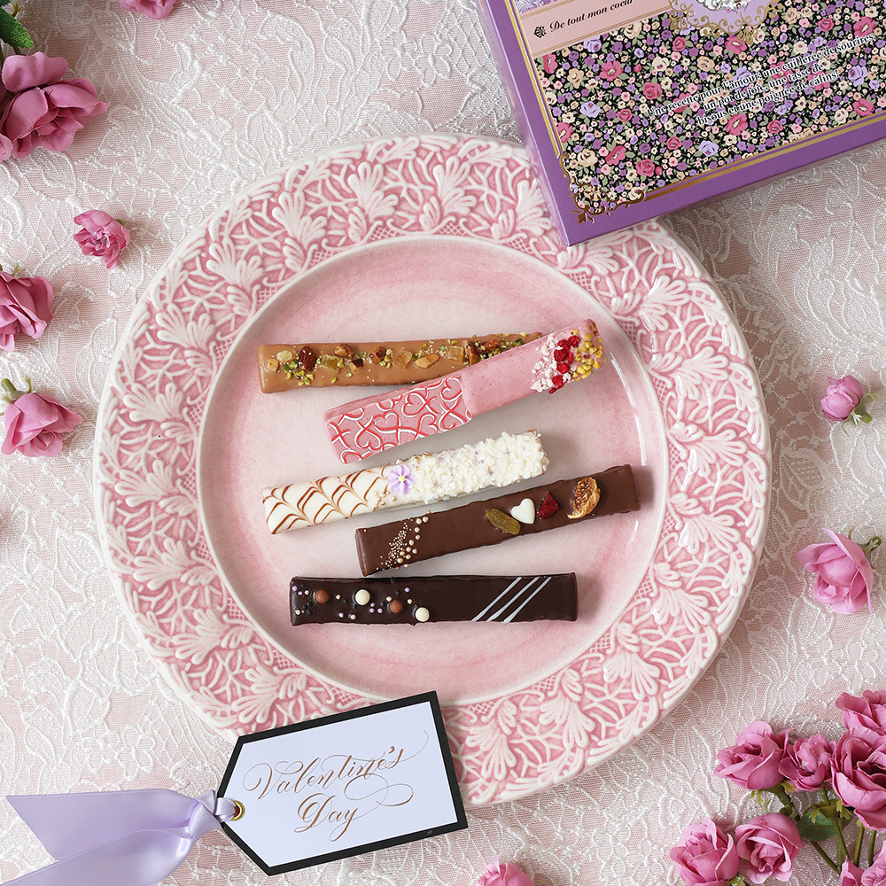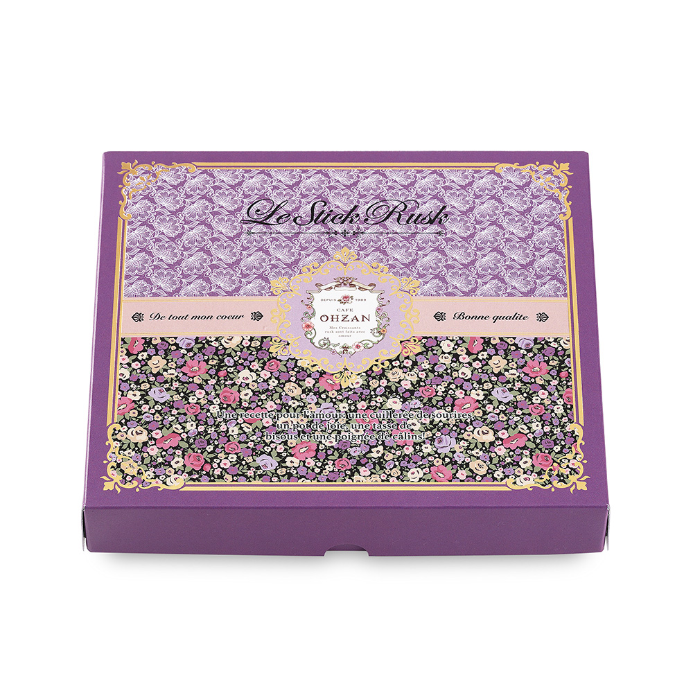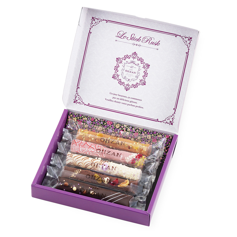 大口注文・法人のお問い合わせはこちら“大人可愛い“をテーマにチョコレートラスクを展開する、 CAFE OHZAN(カフェオウザン)。バレンタイン、ホワイトデーに向けて、数量限定の特別な商品をお作りしました。 フランス語で「うっとりするような、すてきな」を意味する” Ravissant”と名付けられた、スティック型のラスク。一本ずつ手作りのチョコレートラスクは、ため息のでるような美しさです。