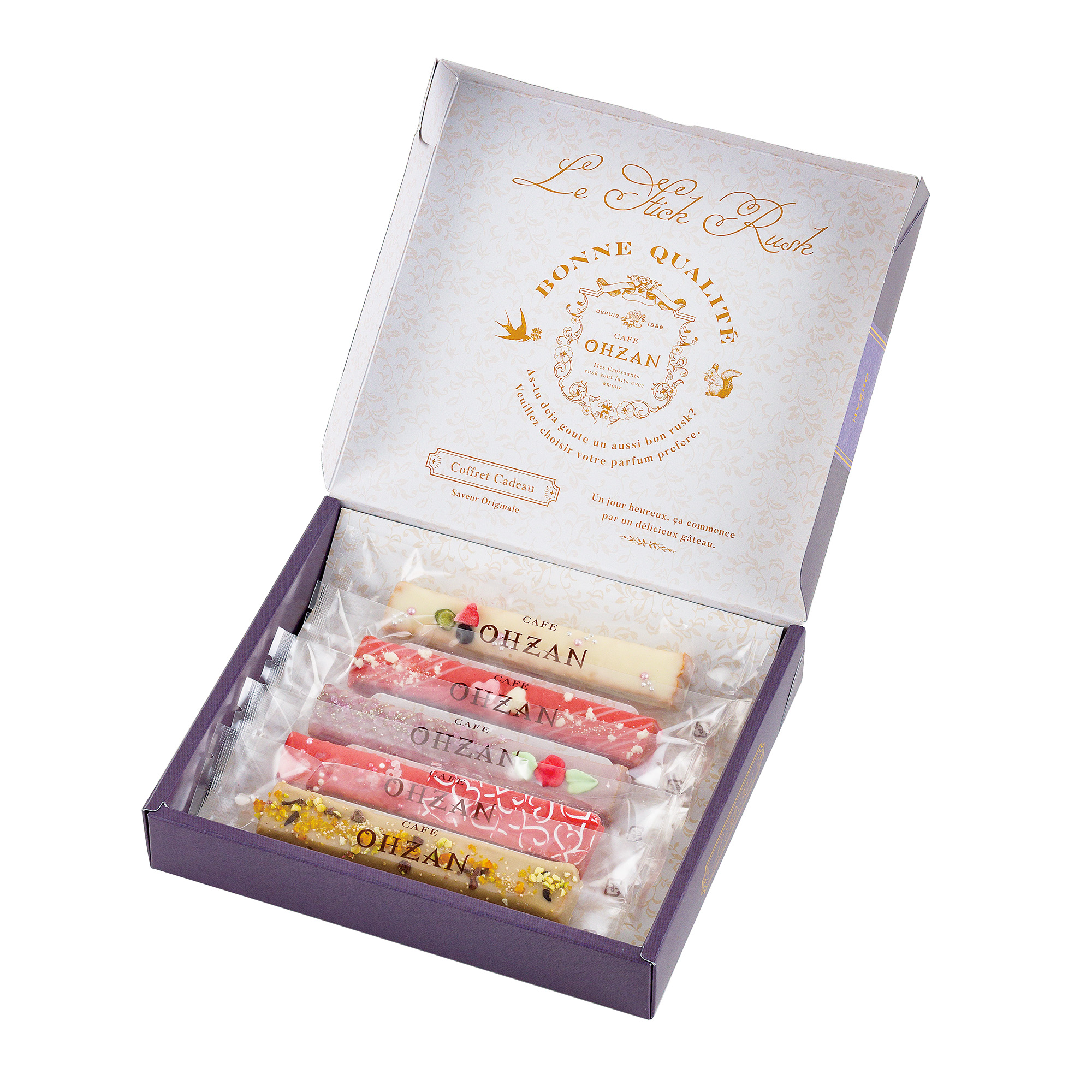 毎年ご好評をいただいている「CAFE OHZAN(カフェ オウザン)」の「母の日」スティックラスクの5本入りセットです。華やかさに喜んでいただきながら、メッセージが伝わることを意識しました。