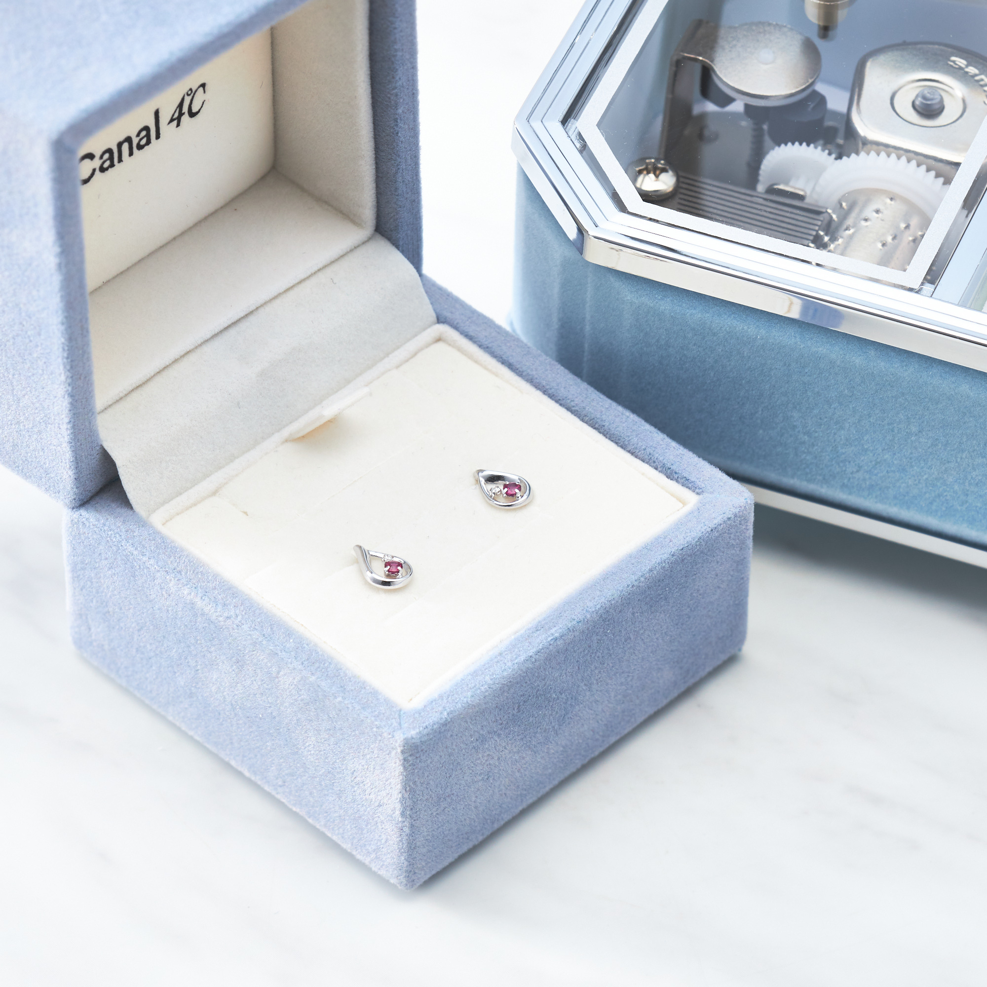 ジュエリーブランド「Canal 4℃」のタンプ限定セット。みずみずしいしずくモチーフに誕生石とダイヤモンドを添えたホワイトゴールドのピアスにオルゴールケースをセットにしてお届けします。蓋を開けると「美女と野獣」のメロディがジュエリーを包み込み、ロマンティックに演出します。