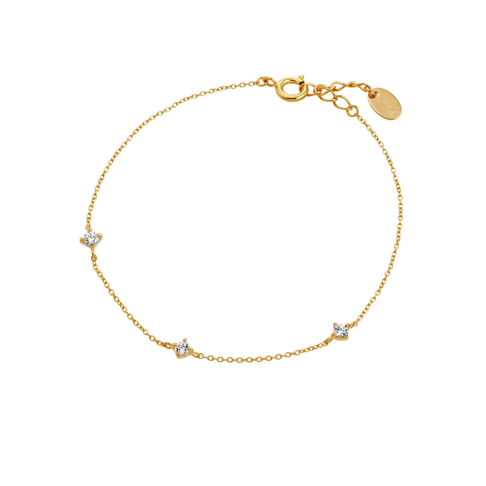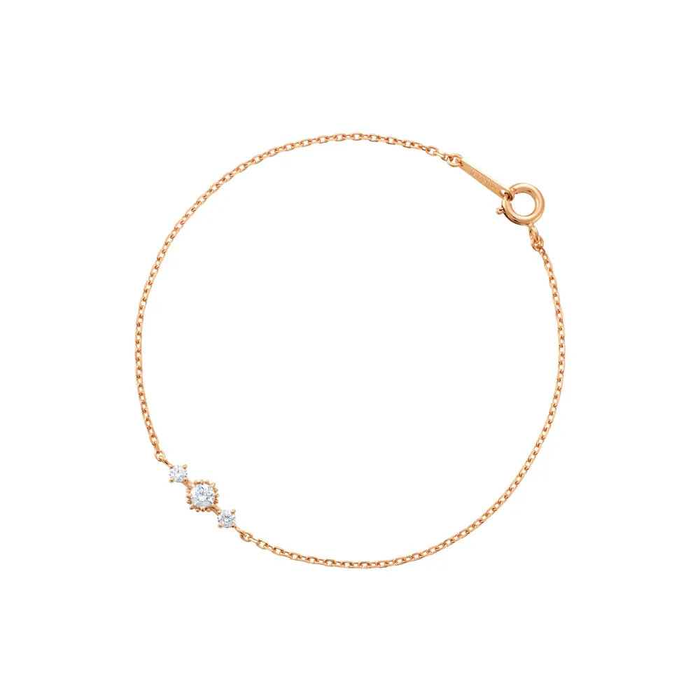3石のキュービックジルコニアが寄り添い、ピンクゴールドコーティングの優しい色合いが魅力的なブレスレット。
