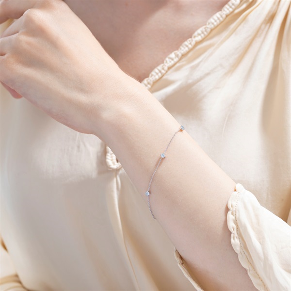 お花をイメージした石座に留まったキュービックジルコニアが手元を華やかに彩るブレスレット。