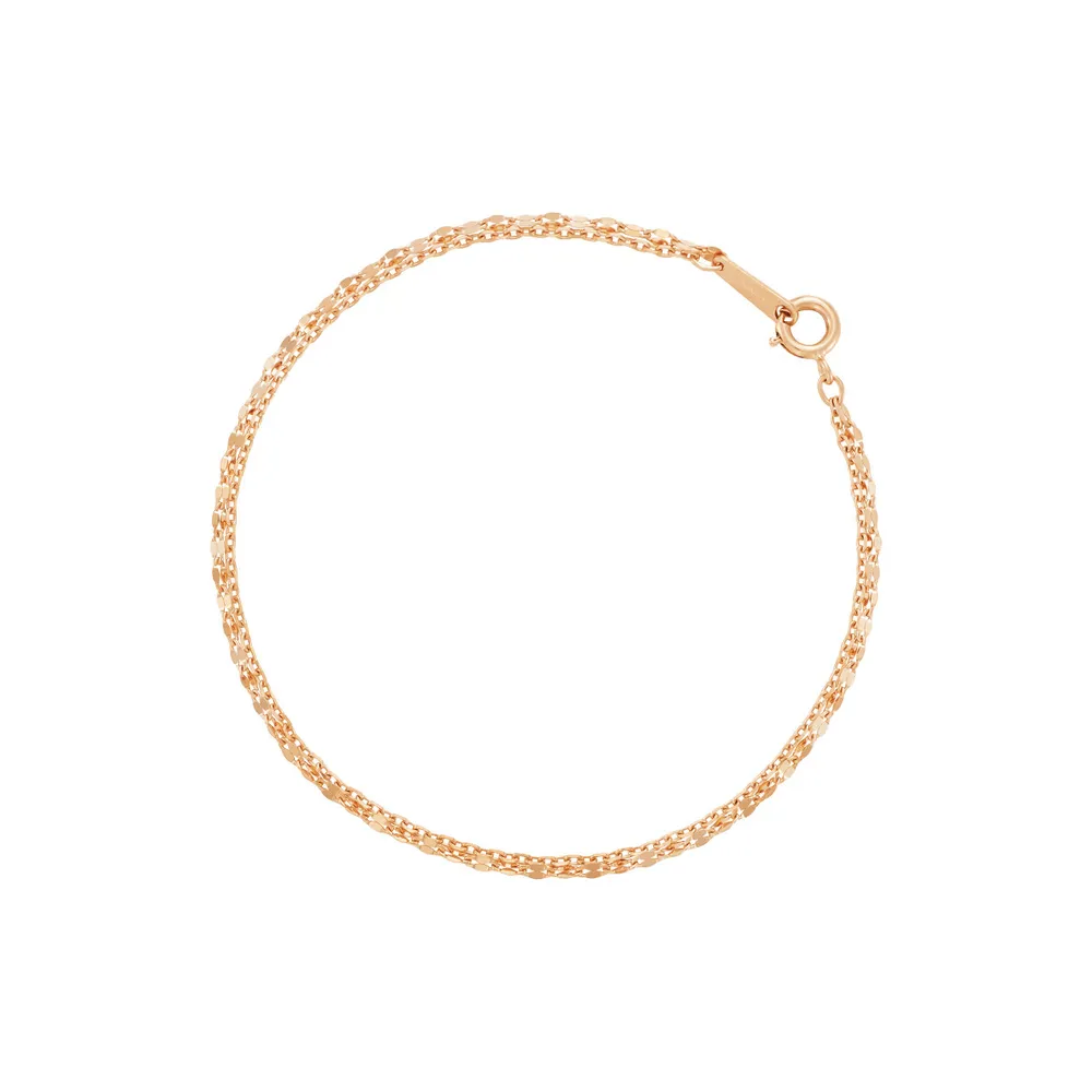 表情が異なり、程よい存在感のある2連のチェーンが手元を華やかにしてくれるブレスレット。