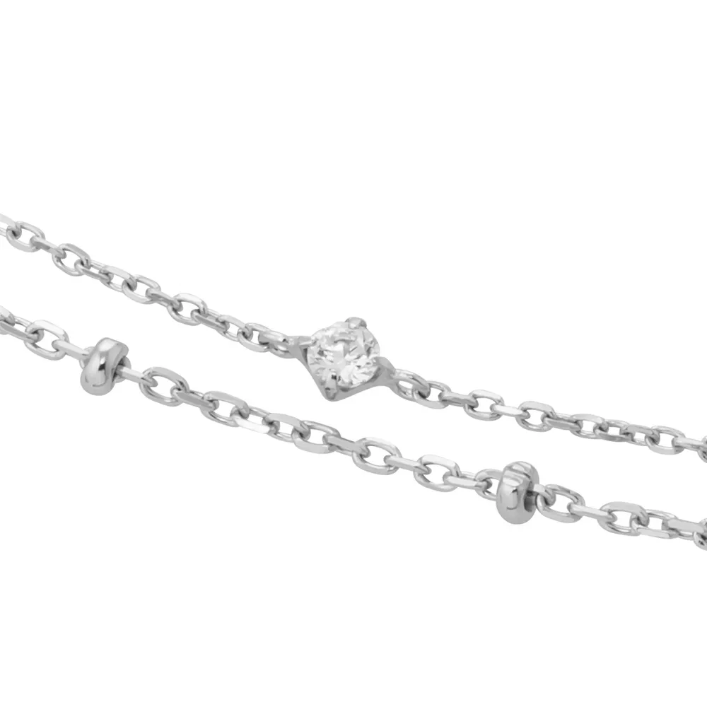 手元を華やかに演出する2連ブレスレット。 眩い輝きを放つキュービックジルコニアを添えた、女性らしさを引き立てるデザインです。 上品な輝きをはなつロジウムコーティング。