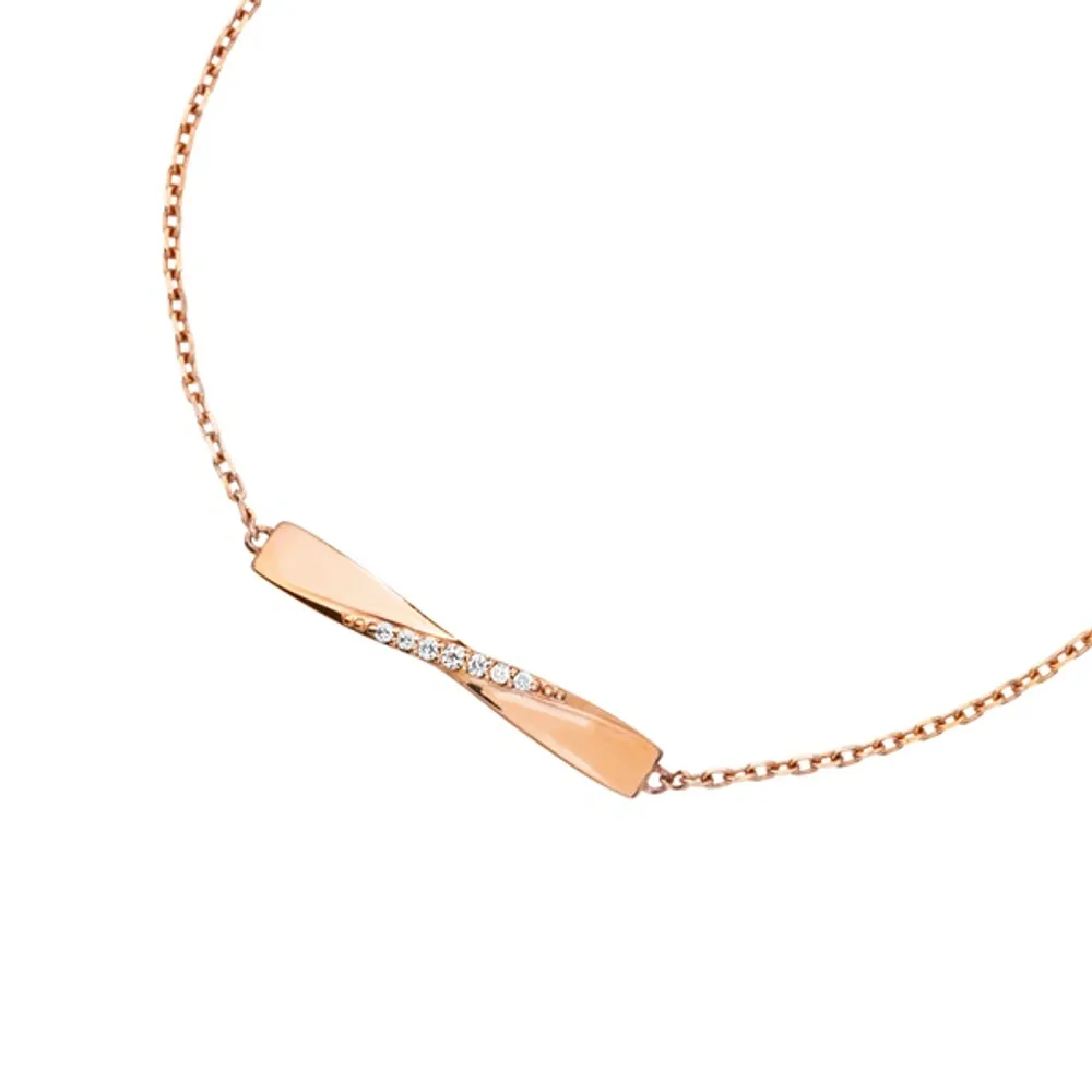 手首に滑らかに沿うフォルムで寄り添う心を表現したブレスレット。キュービックジルコニアが可憐にきらめきます。ピンクゴールドコーティングの温かみのある優しい彩りも魅力です。