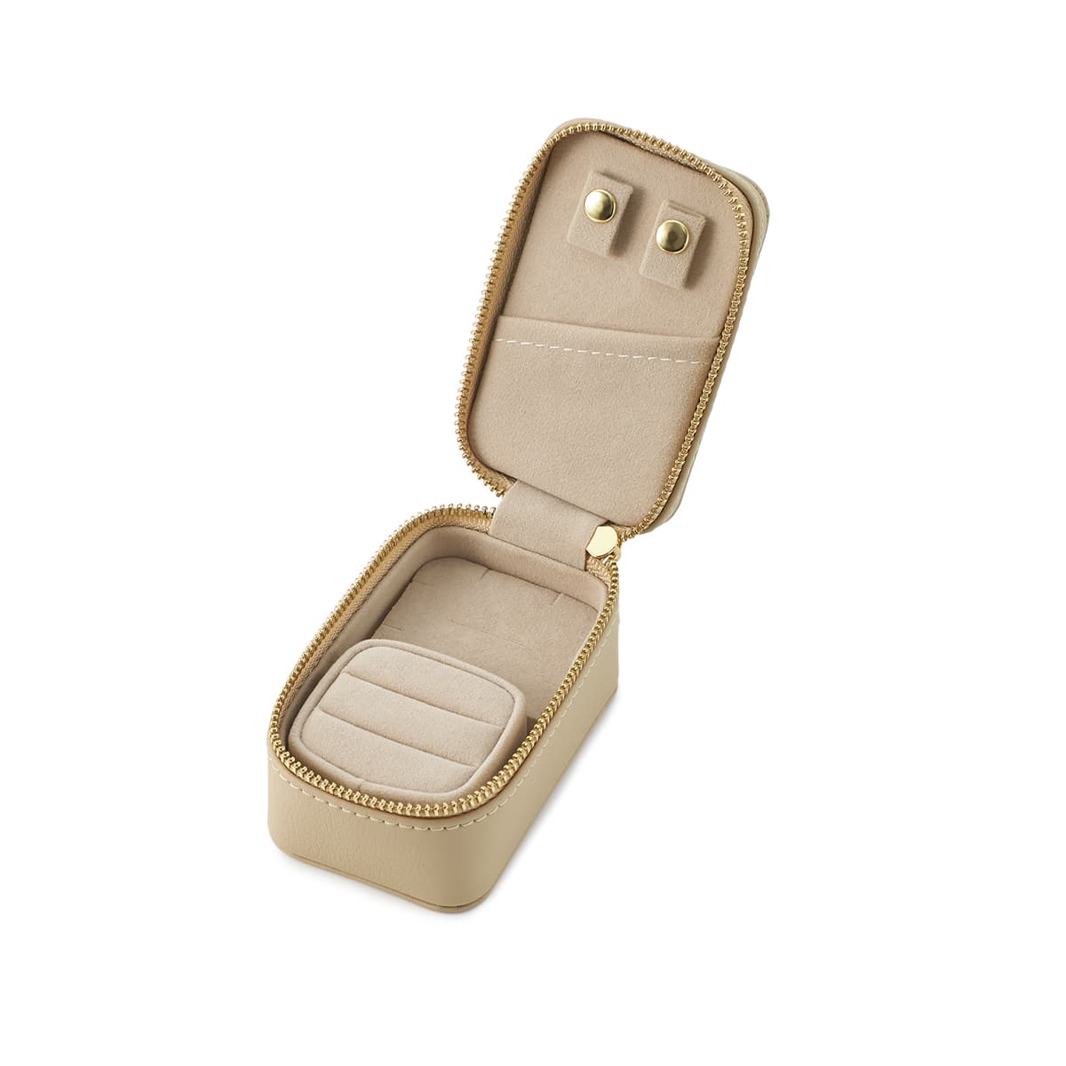 持ち運びにぴったりなミニジュエリーポーチ。内側にはお気に入りのジュエリーをお入れできるほか、スポンジを取り外せばリップなどの小物も入るスペースがあるので、ひとつ持っておくだけで旅行などのお出かけにも活躍してくれます。