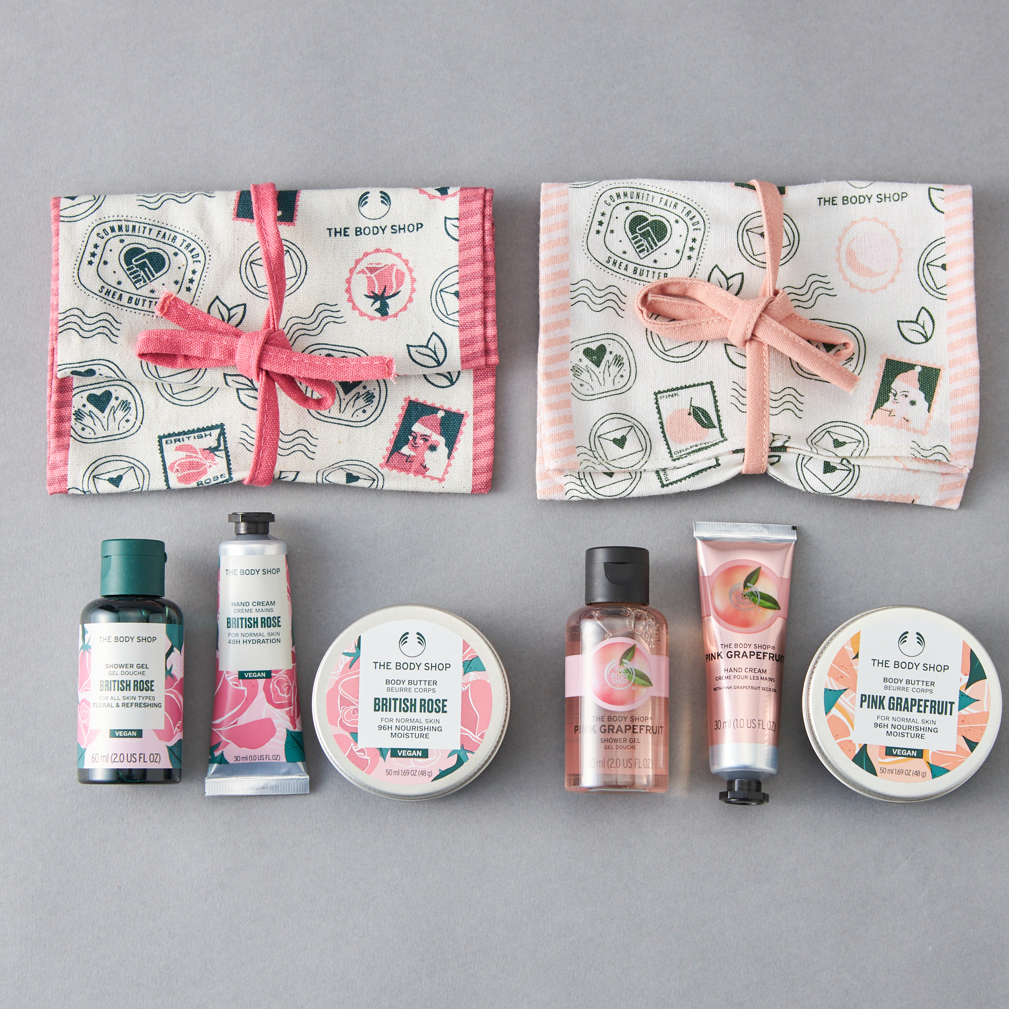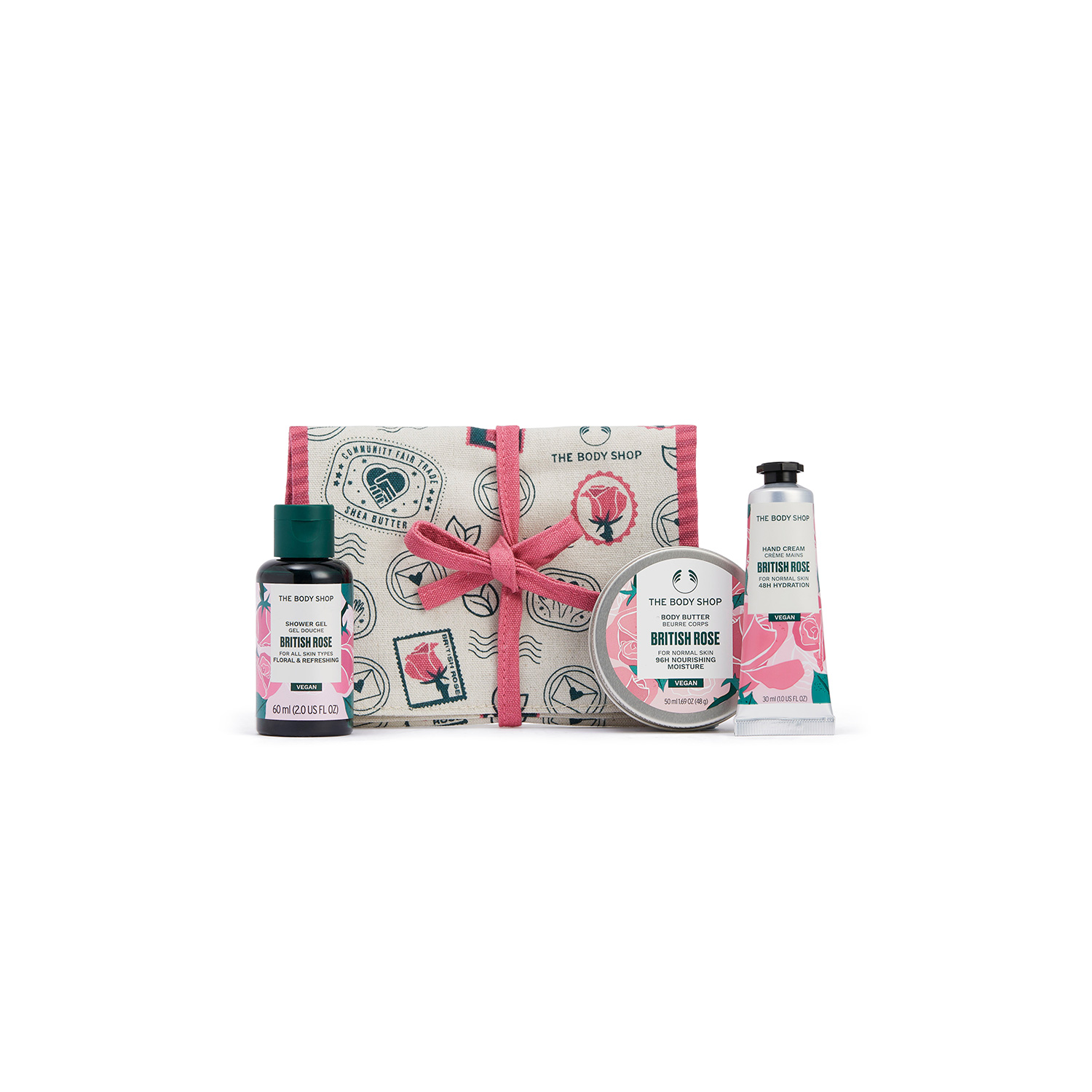 大口注文・法人のお問い合わせはこちら世界60カ国以上に3000店舗以上を展開する「THE BODY SHOP(ザボディショップ)」のバス&ハンドケアをお楽しみいただける、ポーチ付きの数量限定ギフトです。 肌をすっきりと洗い上げるミニボディシャンプー、うるおいに満ちたハリのある肌に導くミニボディバター、ジェルクリーム状のテクスチャーでさらっとべたつきにくい使用感のハンドクリームのセットは、ポーチごと持ち運べて、外出先やワークアウトのお供にも大活躍。 日ごろの感謝を伝える贈り物としてはもちろん、ご自身用としてもおすすめの万能ポーチギフトです。