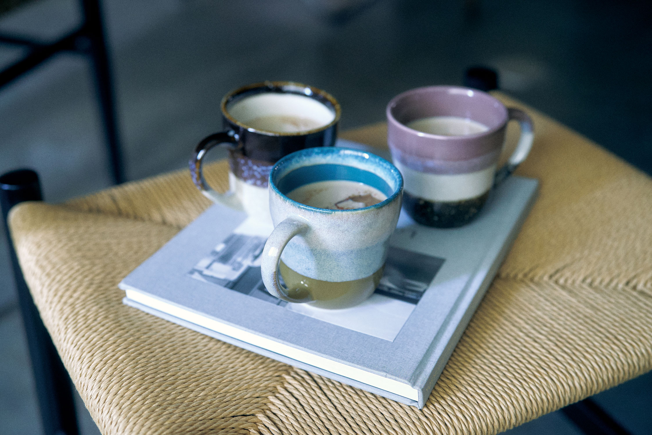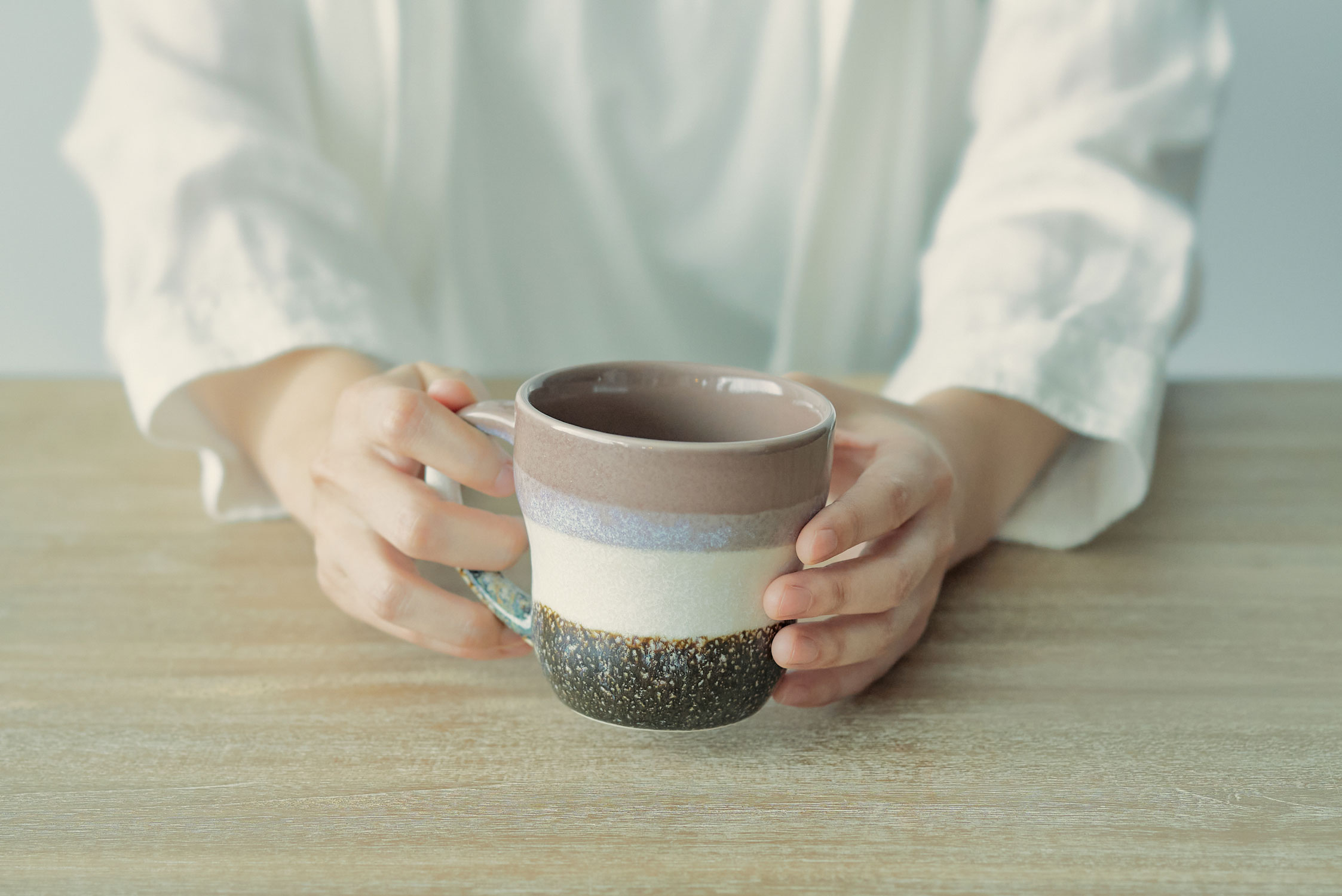 くつろぎのときに。釉薬を1つ1つ掛け分けて織りなす一期一会の柄行きは、性別や年代を問わず、飽きることがありません。おうちで、オフィスで、ブレイクタイムにお気に入りの飲み物で一息を。