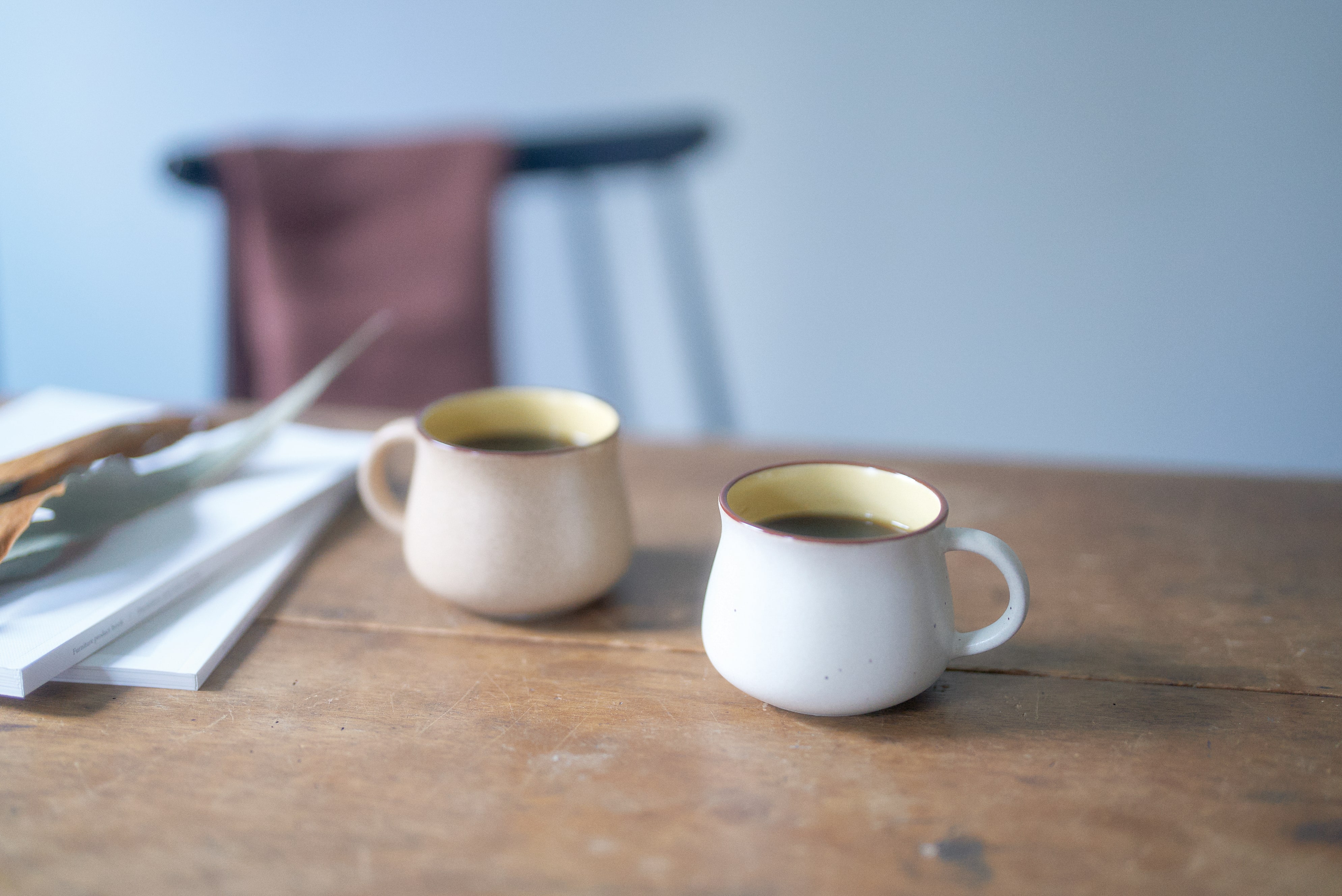 「aito製作所(アイトーセイサクショ)」がお届けする、中と外でトーンの違う色合いにぽってりとしたフォルムがどこかホッとする、いつもの香りを優しく愉しめる飽きのこないマグカップ。ペアセットですので、お祝いのギフトにもおすすめです。